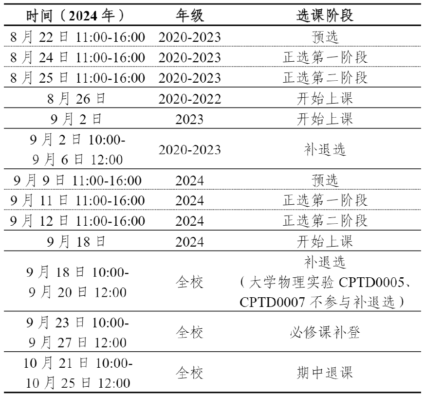 1.选课时间安排如下图所示,请注意各时间节点。