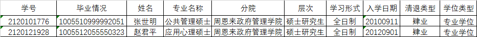 接研究生院通知,根据《南开大学研究生学则》的相关规定,现决定对截至2019年6月超过最长学习时间的研究生学籍开展清退工作。现将拟清退且无法联系的研究生名单公示如下: