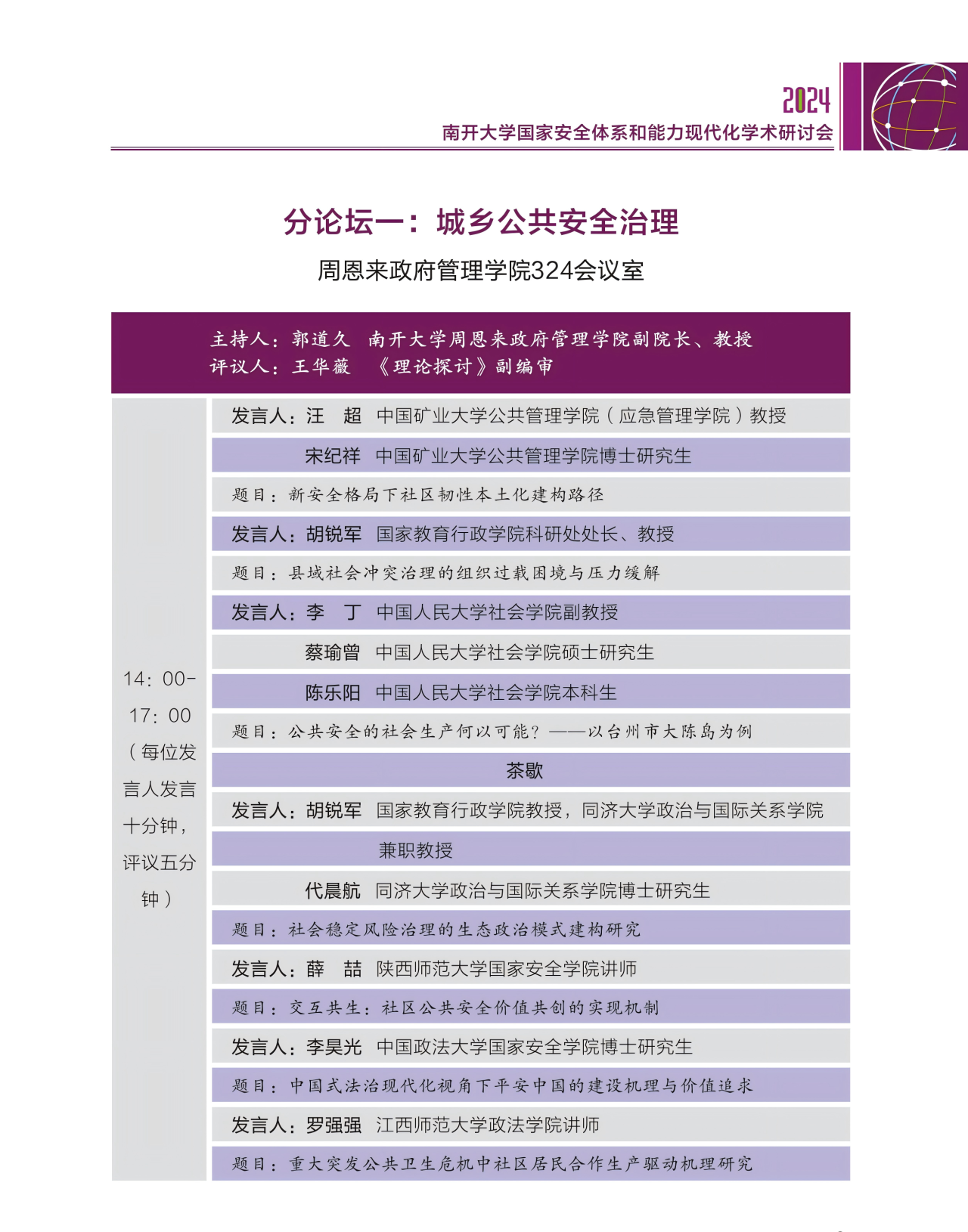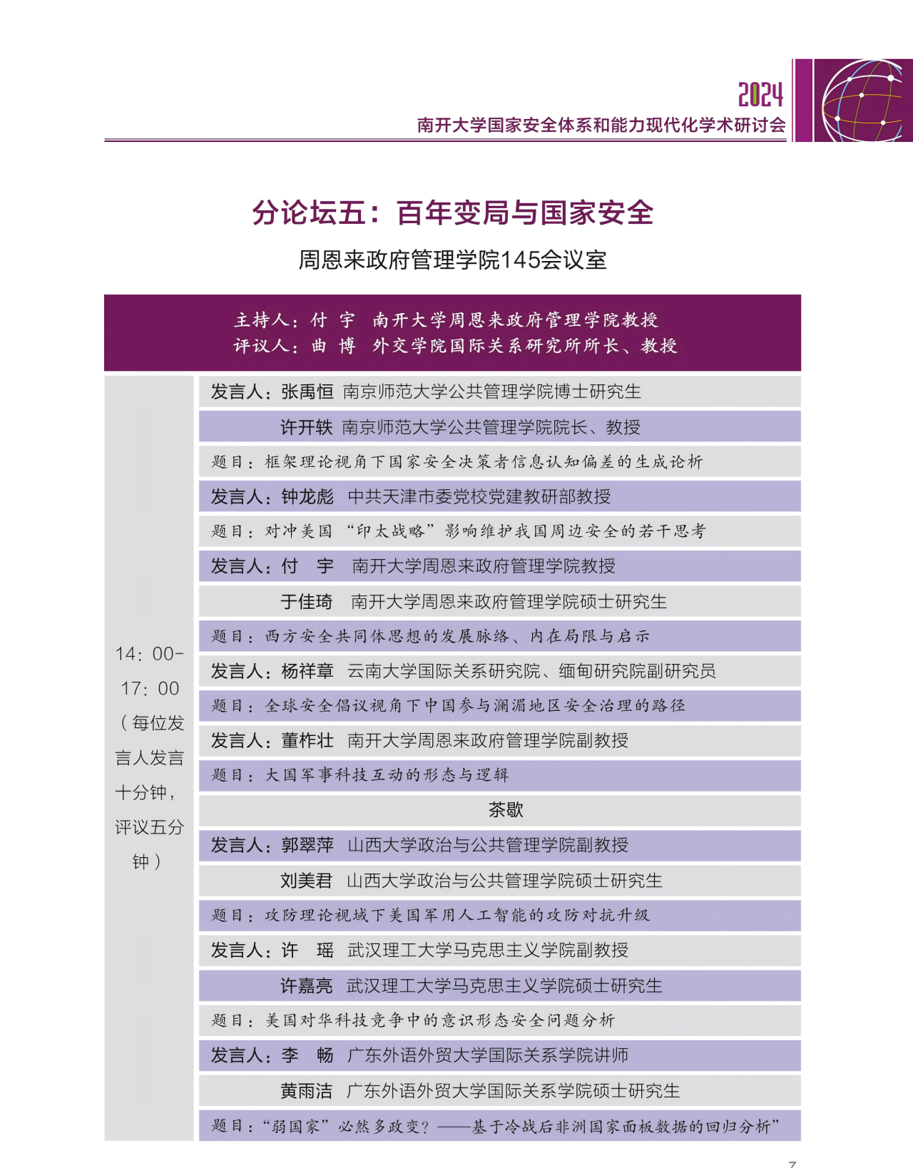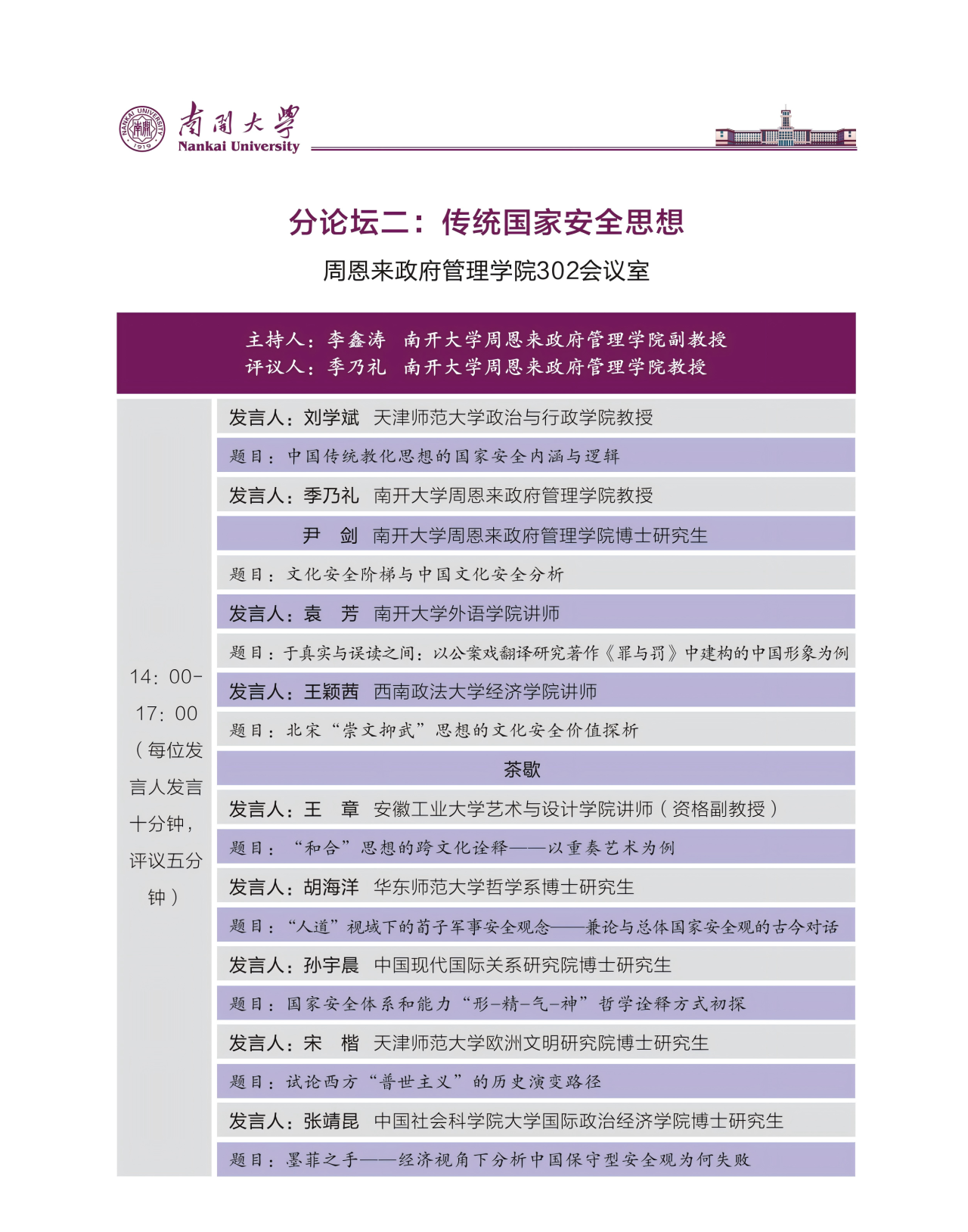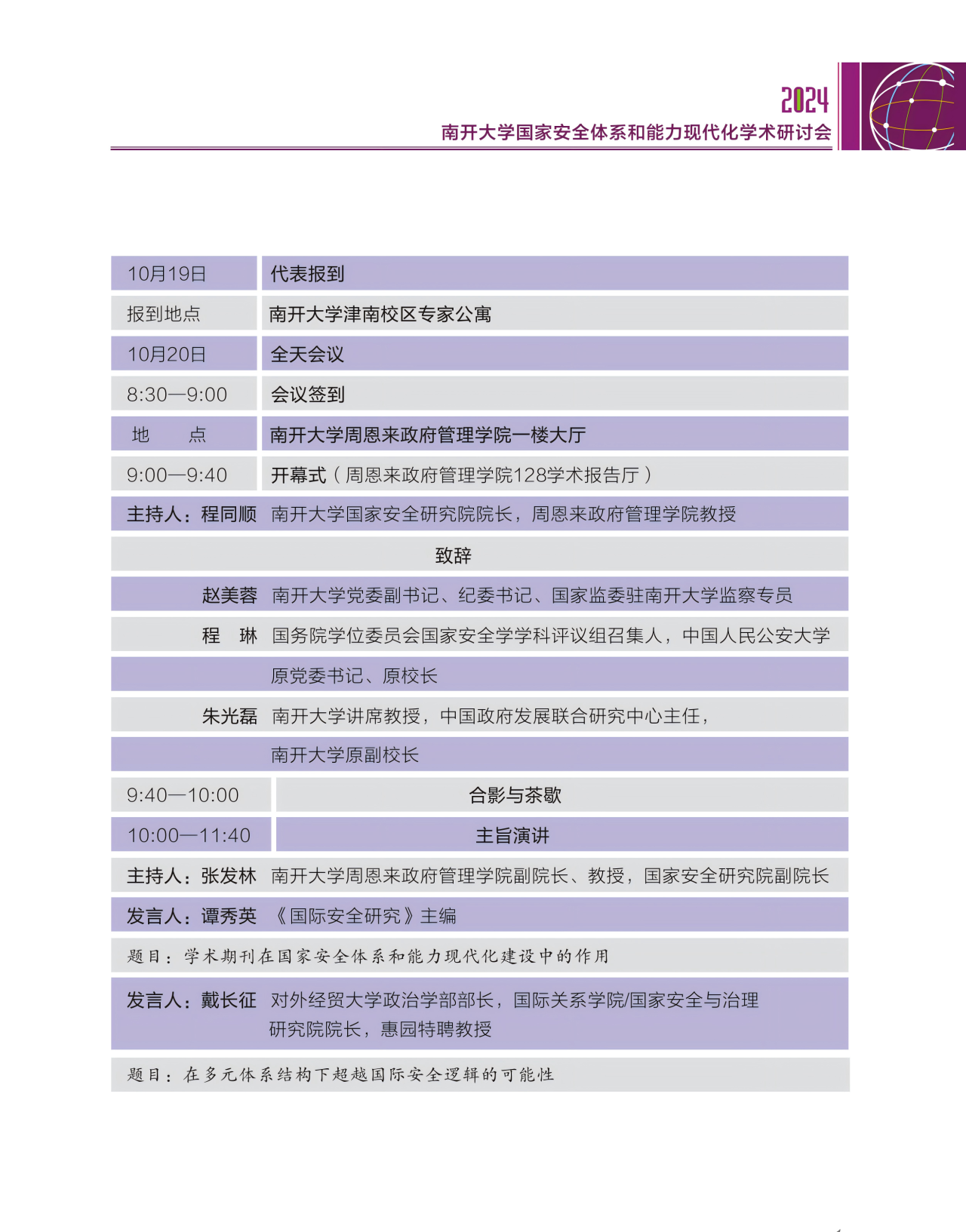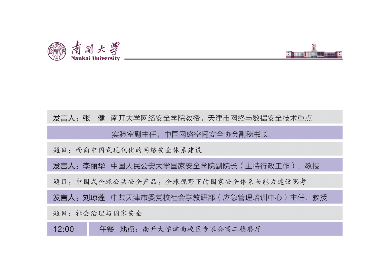 南开大学“国家安全体系和能力现代化”学术研讨会议程发布