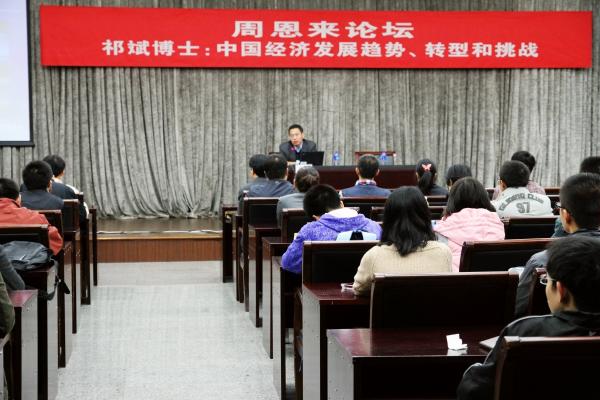 10月17日,中国证监会研究中心主任、北京证券期货研究院执行院长祁斌博士应邀做客“周恩来论坛”,做了题为“中国经济发展趋势、转型及挑战”的报告。活动由周恩来政府管理学院院长吴志成教授主持。