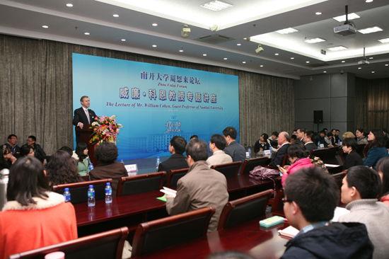 科恩先生曾5次访问我校并为我校师生进行演讲:2007年3月到访天津与我校专家学者进行座谈并向师生阐释其“立足美国、面向中华”的经营理念;2008年3月25日访问我校并为南开师生演讲“明天的希望”; 2009年3月,科恩受聘为南开大学周恩来政府管理学院客座教授并为南开师生发表主题为“全球金融危机下的中美关系”的演讲;2011年3月17日访问我校并为南开师生演讲“中美关系”; 2012年3月20日访问我校,并围绕“如何为决断时刻做准备”主题发表演讲。此次为其第六次访问我校。