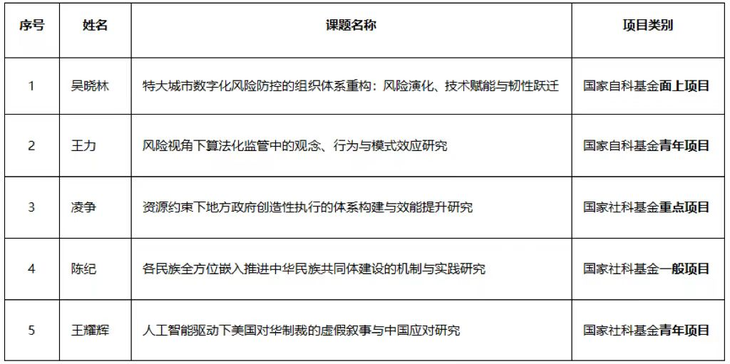 近日,2025年度国家级科学研究项目立项情况陆续发布,南开大学周恩来政府管理学院共获得5项课题支持。