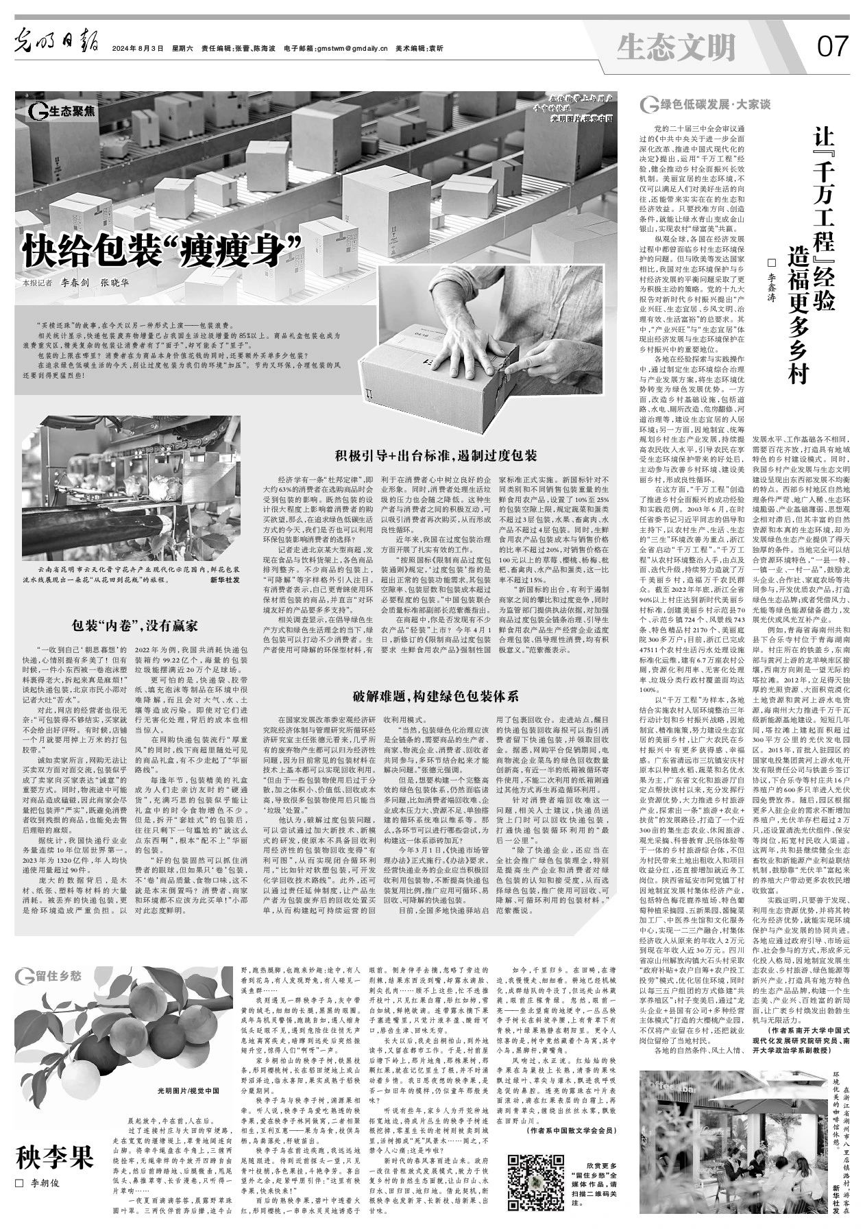 南开大学周恩来政府管理学院李鑫涛副教授在2024年8月3日的《光明日报》上发表文章《让千万工程经验造福更多乡村》。文章主要关注乡村全面振兴事业,主张运用“千万工程”经验,将生态优势转为绿色发展优势,实现环境保护与产业发展协同共进,打造美丽乡村。