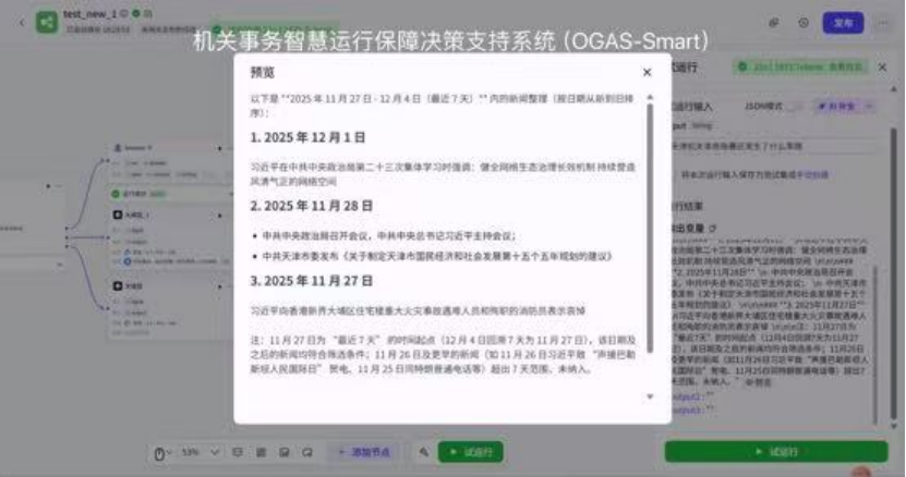 由卫荷宁、闵馨仪、宋卓凡、张旺组成的行政管理专业团队,开发了一套机关事务智慧运行保障决策支持系统(OGAS-Smart)。该系统聚焦机关事务管理痛点,构建三大核心功能模块:智能资讯汇聚与研判模块可自动采集整合行业动态,生成结构化资讯报告;政策法规知识库与智能检索系统以动态知识图谱为支撑,支持自然语言精准查询;综合智能问答辅助接口融合多源大模型能力,为日常办公提供即时应答,全方位提升机关事务管理效能与决策效率。