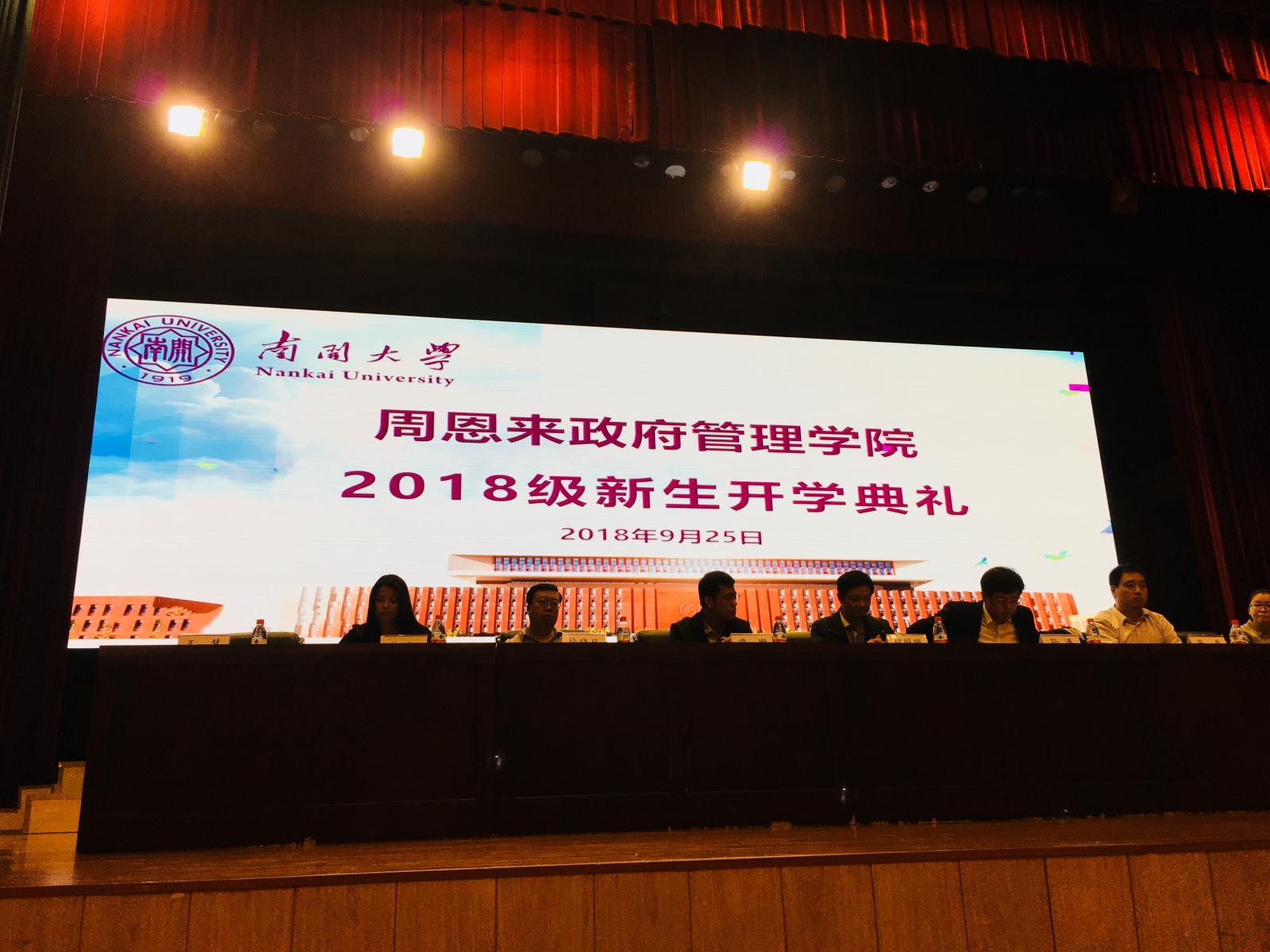 孙涛院长首先对本年度的学院情况和招生情况做出介绍,从“我是谁”“从哪里来”“到哪里去”三个发人深省的哲学问题出发,对全院新生做出勉励,教导新生谨遵南开校训,成为具备开拓的视野、开创的精神、开明的心态的学生,投入到南开园开放的氛围中,做对国家社会有用、让南开自豪的人。
