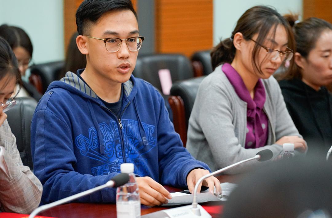 获奖学生2016级周恩来政府管理学院政治学与行政学专业本科生孙煊赫作为学生代表进行发言。他说,感谢1992级政治学系资助人学长学姐所给予的帮助与温暖,感谢南开所教授的奉献精神与公能精神,大家会接力爱心,将这份精神不断传承下去。