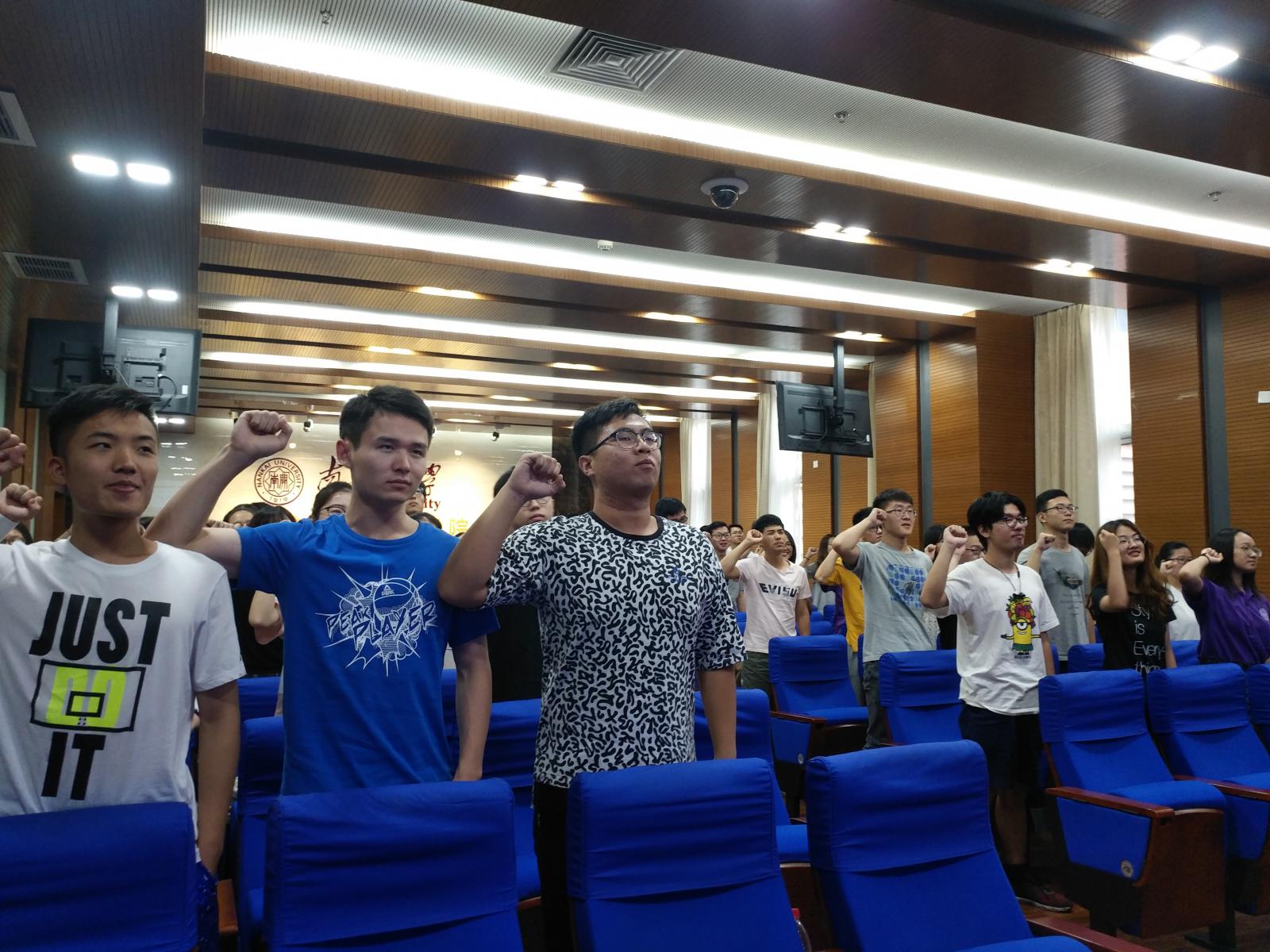 接下来进行了授牌、授旗仪式,高磊老师与王燕老师为实践队代表授予实践队队旗、三个专项的分队旗以及“南开书屋”的牌子。最后王燕老师带领现场的各实践队代表们一起宣誓。大会在热烈的掌声中圆满结束。