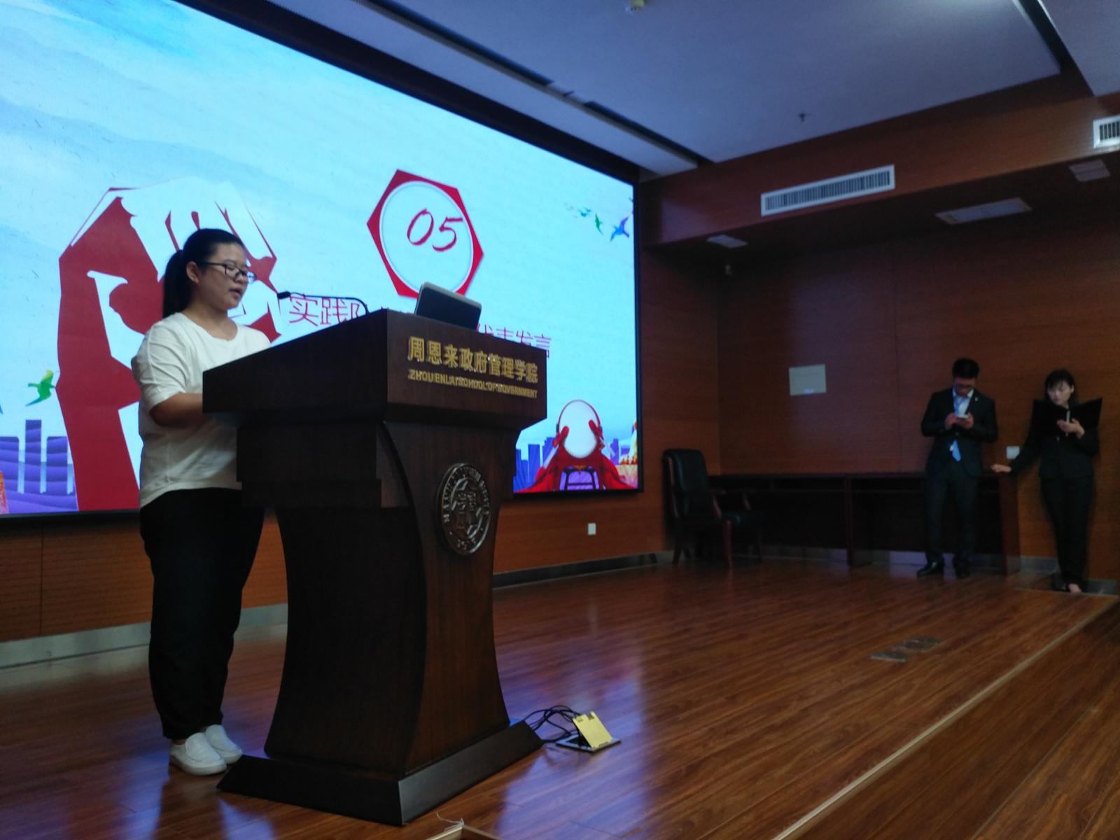 校级实践队队长李淼作为实践队代表发言,她代表全体实践队员表达了对学校、学院的感谢并承诺认真完成实践任务,发扬南开精神,真正做到“知中国、服务中国”。