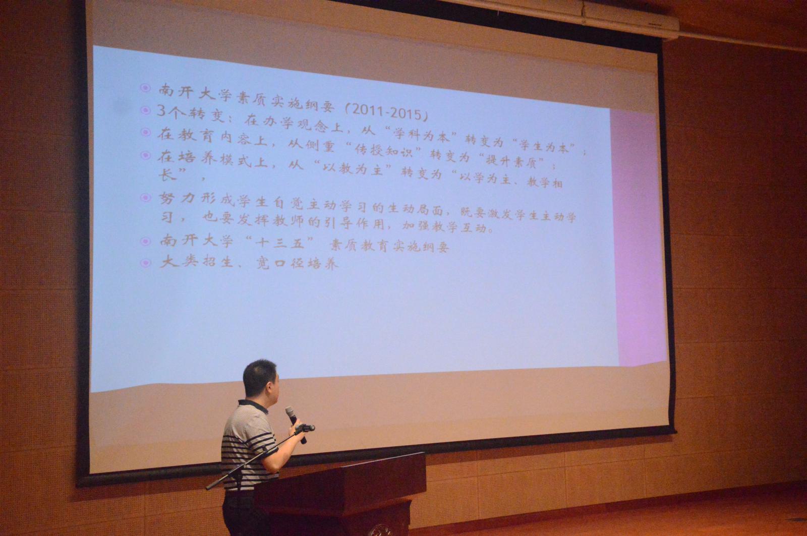 讲座中,高磊老师详细地分别从办学观念、教育内容、培养模式讲述了公能素质教育下的本科生涯,并根据南开大学“十三五”素质实施纲要要求,为了努力形成学生自觉主动学习的生动局面,通过“自评、他评、互评”激发学生主动学习,同时充分发挥教师的引导作用,加强教学互动。