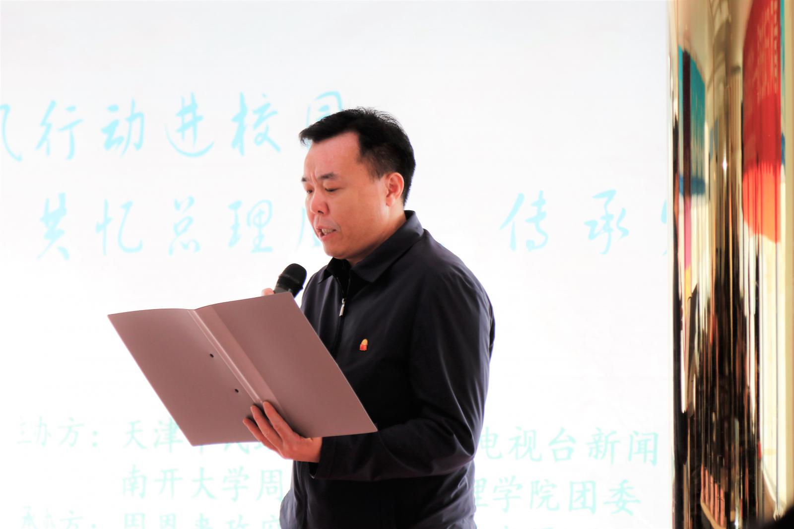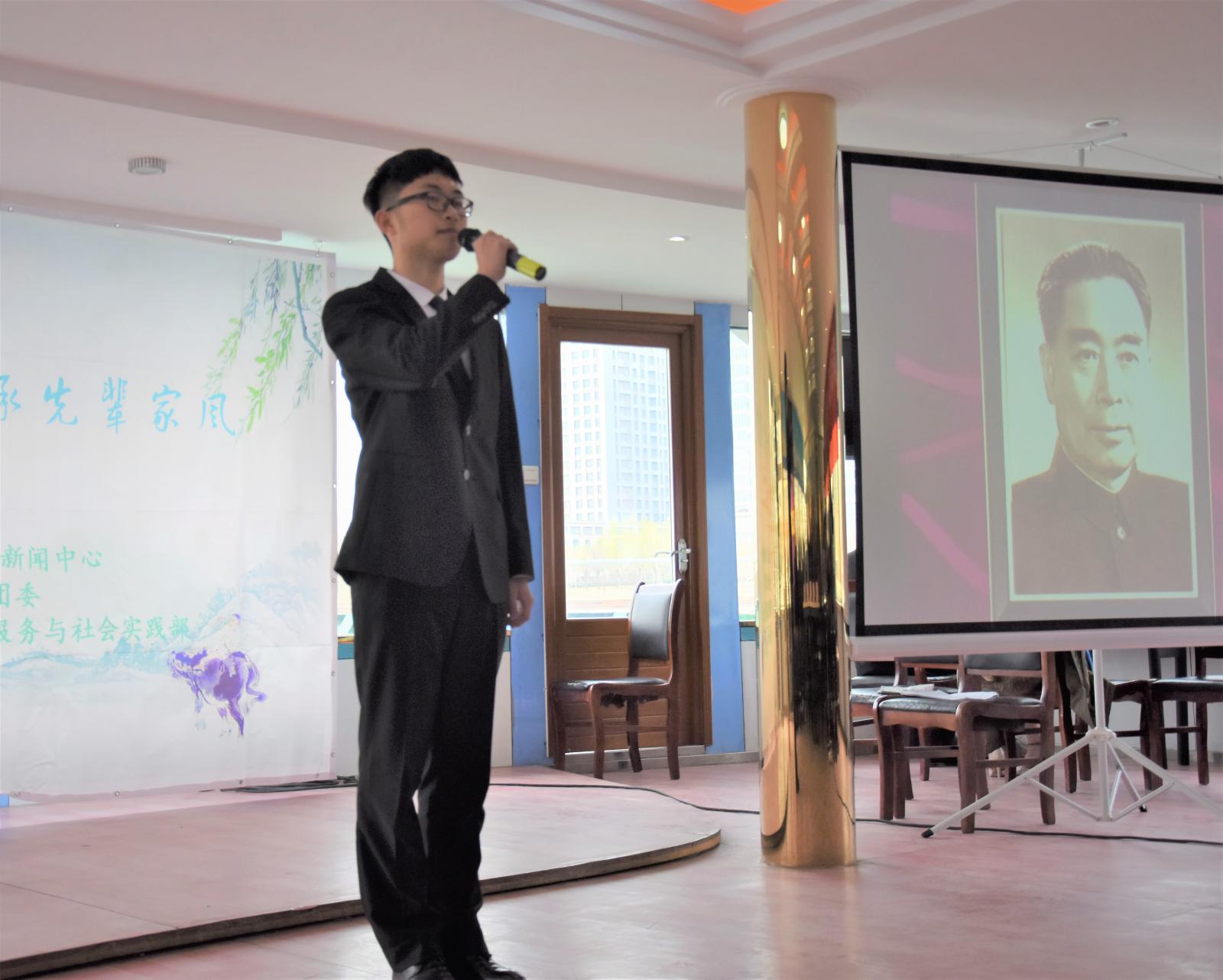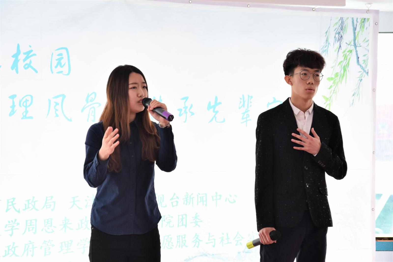 在热烈的氛围中,杨中山书记为在场人员详细介绍了“都市文明 集体共祭”活动,并表达了对于总理的追思怀念之情。随后,周恩来政府管理学院党委副书记兼副院长高磊老师介绍了本院清明品牌化的清明系列志愿服务活动,并发起倡议。接下来,院团委王燕老师带领在场同学一同宣誓,指出新时代的南开学子,应牢记以周恩来总理为代表的历代南开先贤嘱托,积极承担肩负的使命职责,倡导文明祭扫,推进生态文明,以自身的实际行动纪念周恩来总理。