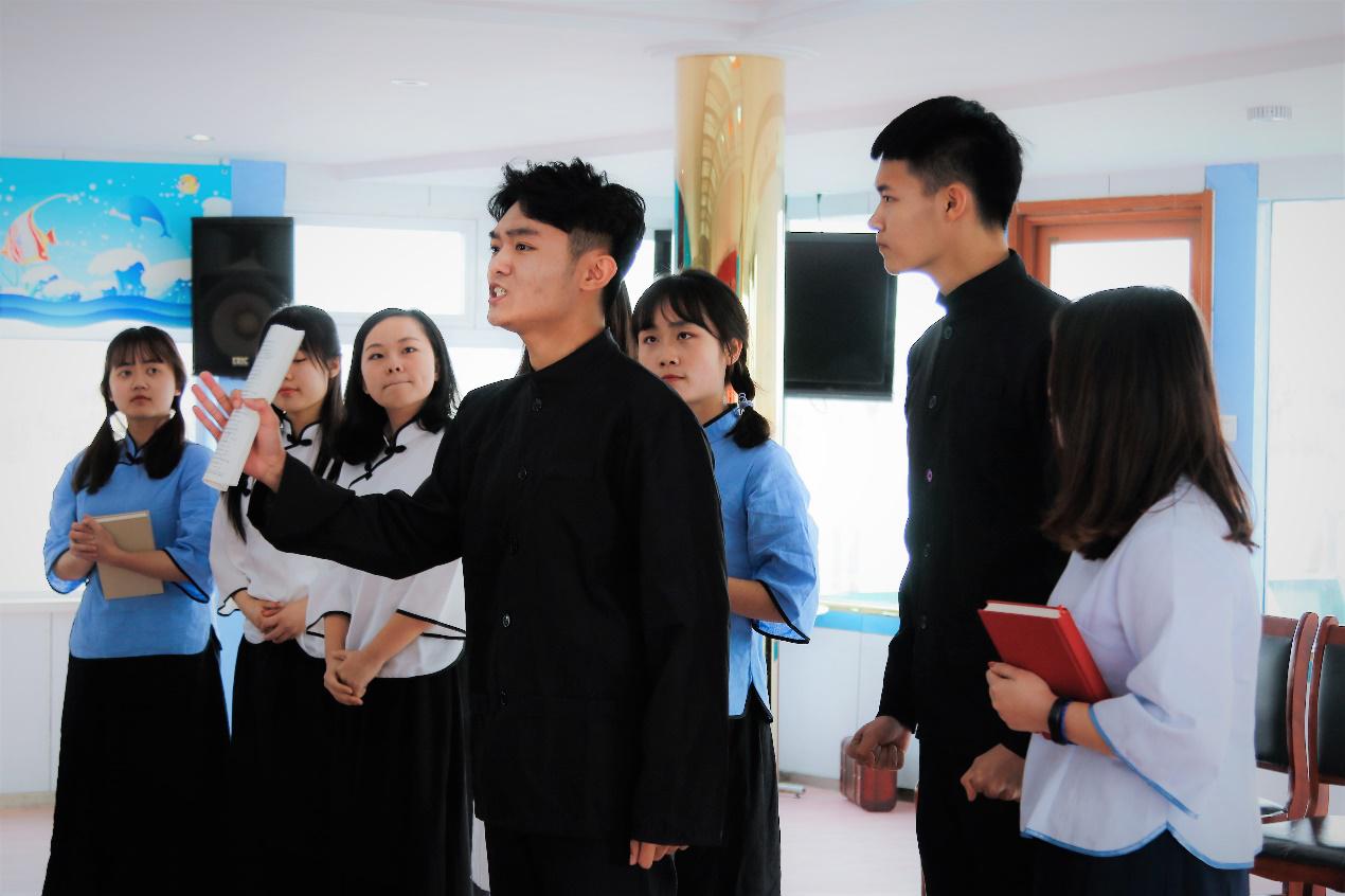 周恩来总理是南大之先辈、天津之骄傲、国家之杰出楷模,而总理不仅是优秀家风的树立者,更是殡葬改革的倡导者。他作为老一辈无产阶级革命家带头签名倡导火葬,更与其夫人最终选择将骨灰撒向大海。南开大学恩来精神展演团作为总理精神的新时代宣传者与践行者,在现场倾情讲述了“最后的日子”、“一个骨灰盒”等总理的感人事迹,并诵读了有关红色家风的书信。翔宇剧社、新觉悟社等共同带来了精心编排的话剧《觉悟》,回顾了总理年轻时的事迹,以南开学子的视角一同追忆总理往事。