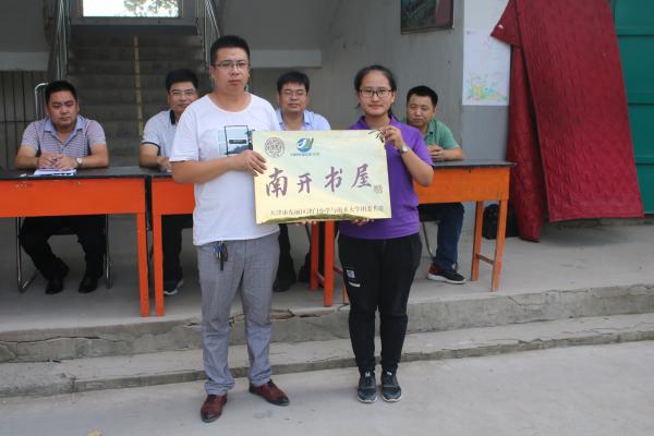 支教队队长黄妍与王边联校魏老师进行了天津市东丽区津门小学与南开大学团委共建“南开书屋”授牌仪式。