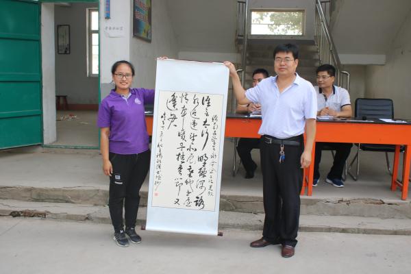 在会议的最后,永合会镇总校校长王满新为南开大学支教团队赋诗赠画:“谁言太行野棘深,路水迢递望北辰。基地书屋情本暖,丹桂季节又逢君。”表达了对南开大学志愿者们二次支教的支持与感谢。
