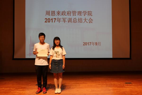 (通讯员 张哲浩 耿欣伟)9月11日上午,周恩来政府管理学院在大通学生活动中心音乐厅召开了军训总结暨表彰大会,新生辅导员耿欣伟、兼职辅导员唐琳、15级本科生邓亚超及全体新生参与活动。
