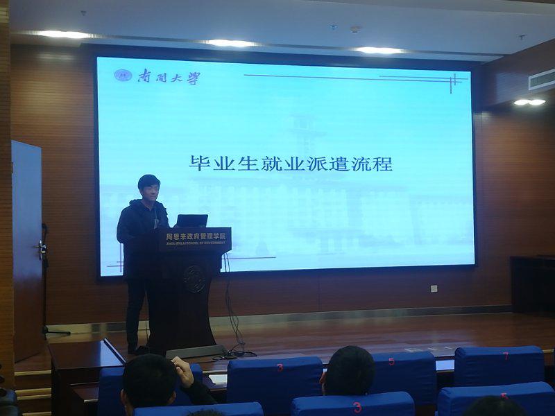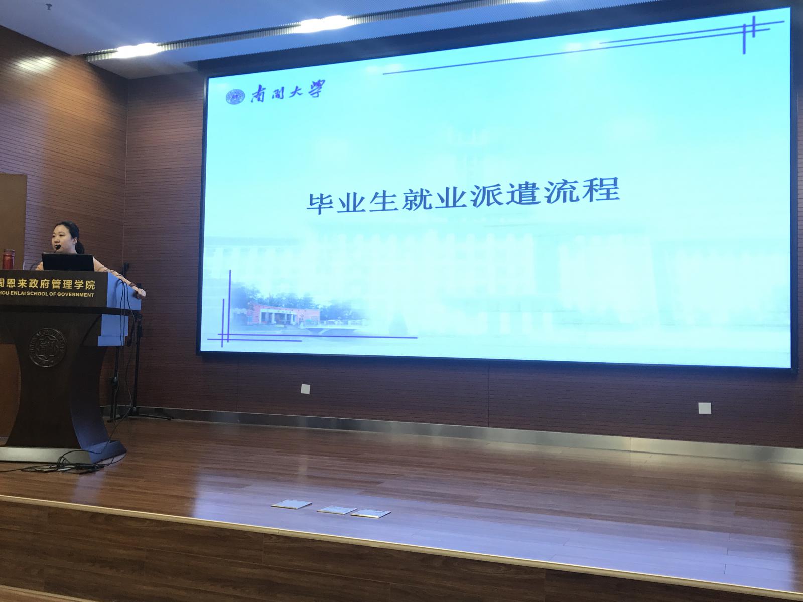 10月24日下午,周恩来政府管理学院2018届毕业生就业工作启动会在学院报告厅顺利召开,研究生毕业生辅导员何志慧、本科毕业生辅导员耿欣伟主讲,2018届全体毕业生到场参加。