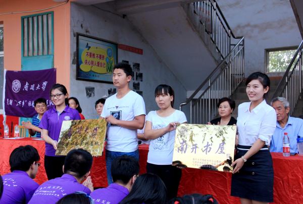启动仪式上,永年县教育局副局长靳晓霞向南开师生表示热烈欢迎。邯郸市教育局副局长胡振林在讲话中表达了对南开支教团队的感谢之情。在支教团队庄严宣誓后,周恩来政府管理学院团委副书记杨晓颖老师充分肯定了支教活动及“南开书屋”对于教育扶贫工作的重要作用,高度赞扬了南开学子践行公能、知行合一的实践价值,同时感谢邯郸教育系统各级领导的关注与支持,以及王边联校师生的通力配合。欢迎仪式在“南开大学社会实践基地”、“南开书屋”的授牌仪式中达到高潮。仪式最后,永合会镇总校校长王满新宣布,南开大学周恩来政府管理学院暑期实践队赴王边联校支教及调研活动正式启动。