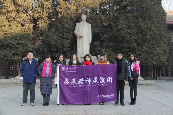 为做好十八届六中全会、以习近平同志为核心的党中央治国理政新理念新思想新战略的广泛深入认识与学习,周恩来政府管理学院组建寒假社会实践宣讲示范队。宣讲队由恩来精神展演团七名本科生组成,指导教师杨晓颖随队。宣讲队受南开大学社会实践共建单位东北育才学校的邀请来到沈阳,将开展为期五天的实践交流活动。