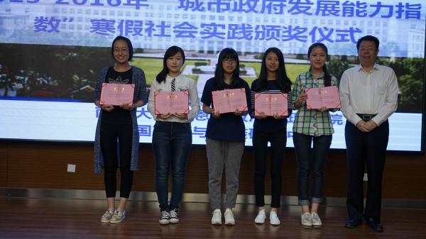 5月16日中午,2015-2016年“城市政府发展指数”寒假社会实践颁奖仪式在周恩来政府管理学院128教室隆重举行。本次颁奖仪式由翟磊老师主持,出席本次颁奖仪式的嘉宾有:南开大学副校长朱光磊,政府学院学院党委副书记奚先来老师,团委何志慧老师、陈佩其老师以及政府学院行政管理学系李晨光老师。会议首项议程是颁奖仪式,由奚先来老师宣读本次社会实践先进个人的获奖名单并主持颁奖仪式,朱光磊副校长为获奖同学颁发获奖证书,并与同学们合影留念。