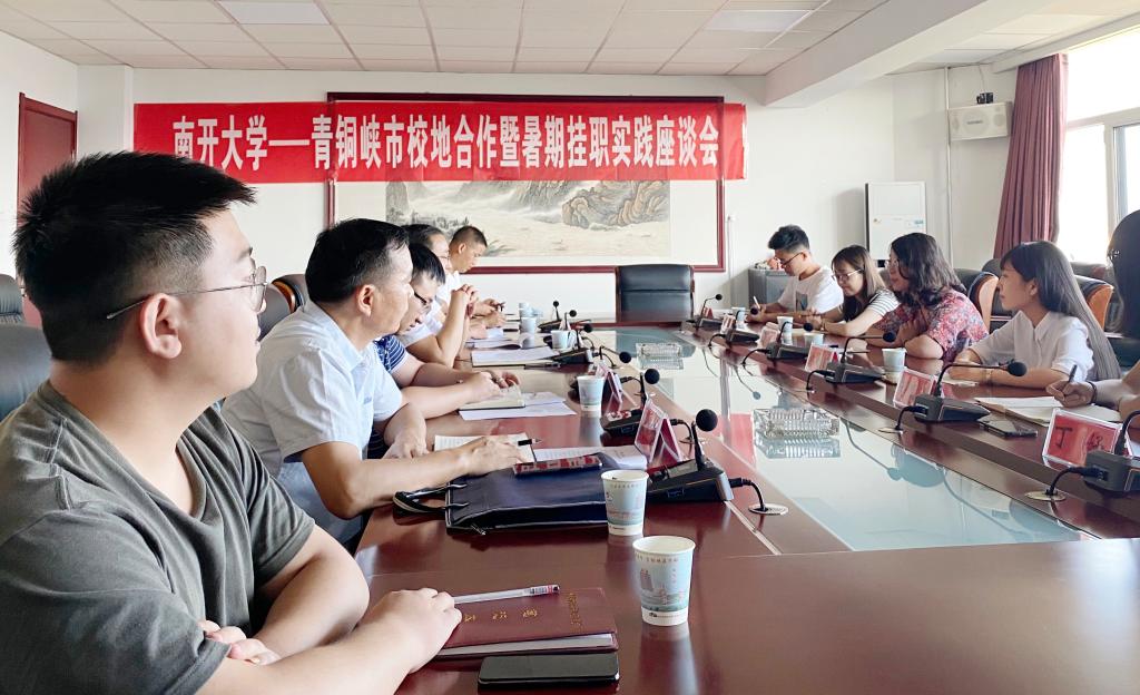 (通讯员:杨晓颖)7月14日,南开大学与宁夏回族自治区吴忠市青铜峡市开展的校地合作暨暑期挂职实践座谈会在青铜峡市委会议室举行。青铜峡市委常委、组织部部长苏忠,市委政研室主任卢海,文化旅游体育广电局副局长包树军,南开校友、青铜峡市选调生张静波及杨轲出席活动。南开大学周恩来政府管理学院党委副书记兼副院长宋媛一行及四名实践队学生参加座谈。