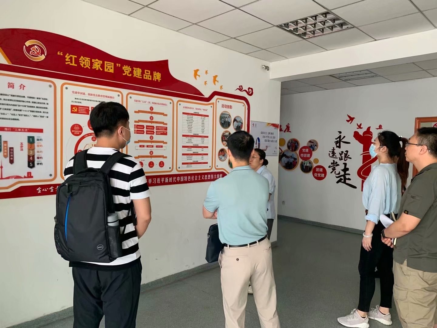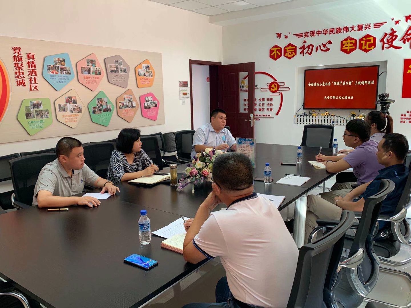 调研团队在与河西区委组织部、政法委、民政局等部门交流中了解到,疫情防控期间,市区下沉干部、街道干部、党员志愿者等积极参与,人数最多时每日近8000人值守在社区防控前沿,逐步建立起以社区党组织为核心、居民委员会为基础、社区工作站为依托,业委会、物业公司等共同参与的“一核多元”模式,不断凝聚互联互动的基层防疫的党建合力。