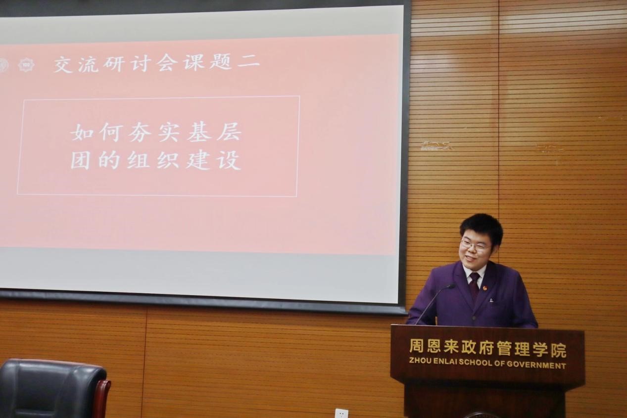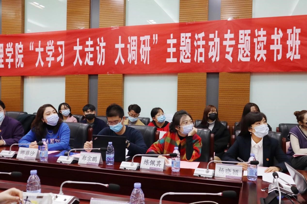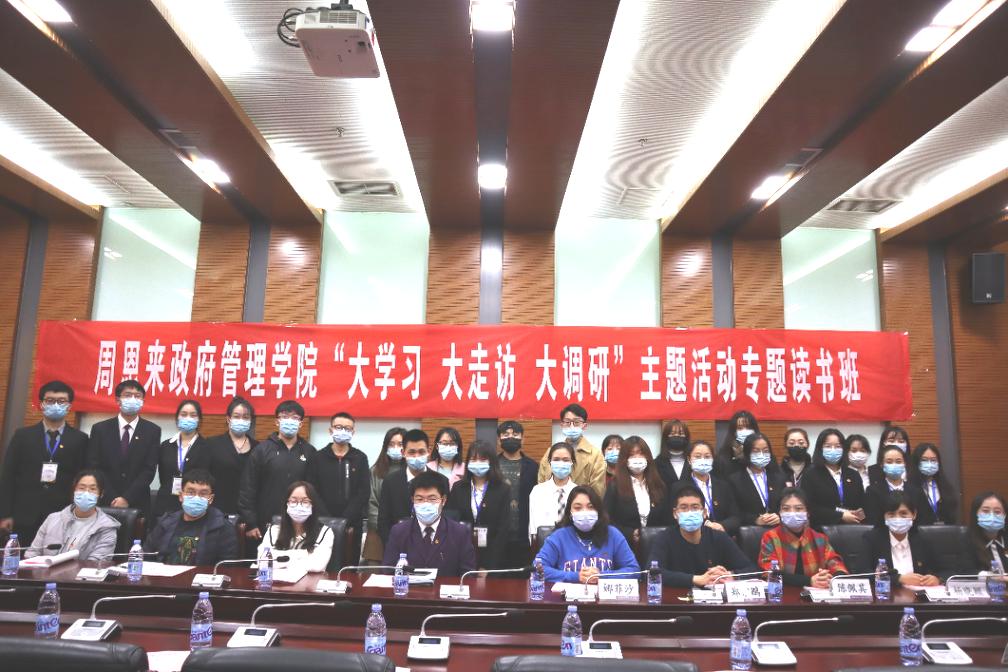 (通讯员:李奕洁 张佳雯 邓慧 摄影:张书平)为深入学习贯彻党的十九届五中全会精神,进一步学习贯彻习近平总书记关于青少年和共青团工作的重要指示精神,11月18日,周恩来政府管理学院团委“大学习 大走访 大调研”主题活动专题读书班集中学习会议于院楼144会议室正式召开。学院团委书记、研究生辅导员杨晓颖老师,学院团委副书记、2017级本科生辅导员陈佩其老师,学院团委副书记、2018级本科生辅导员郑宗鹏老师,2019级本科生辅导员娜菲沙老师,2020级本科生辅导员东韡妍老师,学院团学骨干以及组织部工作人员出席了本次会议,东韡妍老师主持。