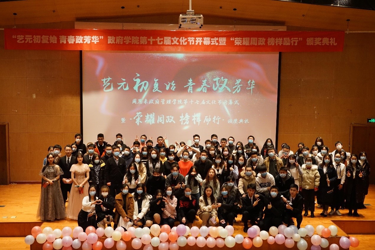 12月19日,“艺元初复始 青春政芳华”周恩来政府管理学院第十七届文化节开幕式暨“荣耀周政 榜样励行”颁奖典礼成功举行。周恩来政府管理学院党委副书记兼副院长宋媛、各年级辅导员及学生到场参加。