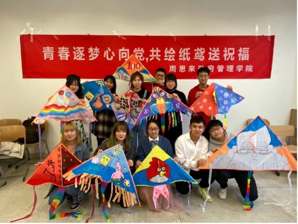 (通讯员:郑宗鹏 李秋月 王庚浩)“青春逐梦心向党,共绘纸鸢送祝福”,为庆祝中国共产党成立一百周年,南开大学周恩来政府管理学院学生会与学生活动中心开展了“手绘纸鸢送祝福”活动。广大师生通过手绘风筝的方式,为中国共产党献上真挚的祝福,喜迎中国共产党百年华诞。