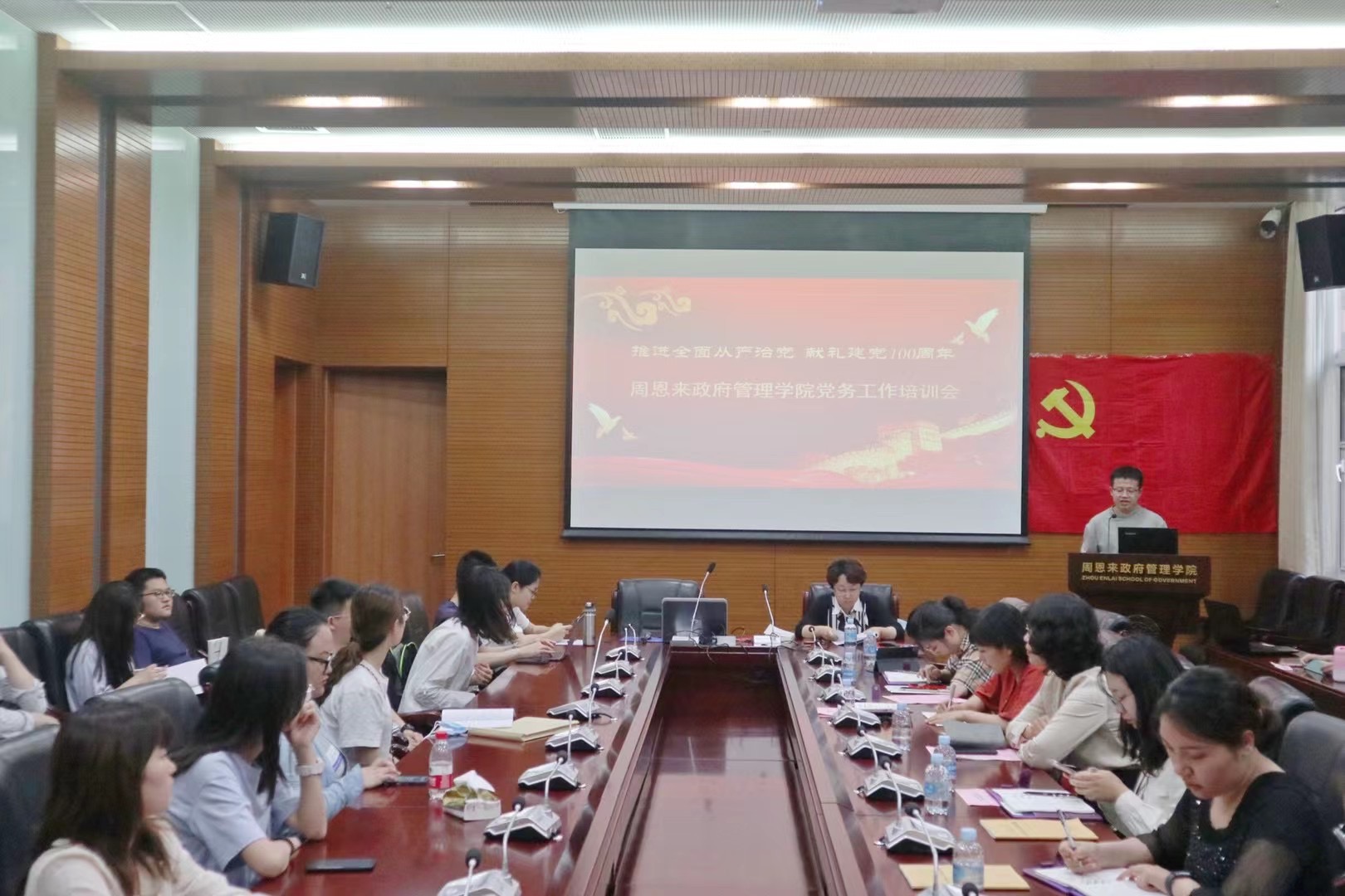 (通讯员:高杨)建党百年之际,为落实党要管党、全面从严治党要求,全面提升党支部组织力,强化党支部政治功能,充分发挥党支部战斗堡垒作用,6月2日下午,周恩来政府管理学院召开主题为“推进全面从严治党,献礼建党100周年”的党务工作培训会。学院党委副书记兼副院长宋媛、专职组织员李敏丽、团委书记杨晓颖及团委专职干部出席会议,各学生党支部书记、委员参加会议。
