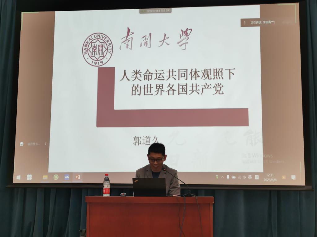 (通讯员:东韡妍 王变勤 摄影:童瑶)为进一步学习贯彻党的二十大精神,坚持不懈用习近平新时代中国特色社会主义思想凝心聚魂,培养提升入党积极分子的理论修养和个人素质,4月4日,周恩来政府管理学院联合旅游与服务学院邀请周恩来政府管理学院教授郭道久讲授主题为“人类命运共同体观照下的世界各国共产党”的专题党课,两学院共200余名入党积极分子参加。