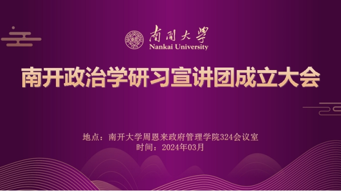 据悉,南开政治学研习宣讲团是在南开大学政治学系、周恩来政府管理学院团委牵头指导,2023级政治学研究生团支部承担筹备与组建工作,协同政治学硕士生党支部、政治学本科生党支部、本科各年级政治学与行政学专业班共同建设的研习宣讲组织。未来,南开政治学研习宣讲团将围绕着主题宣讲、南开政治学历史与发展沿革学习与宣传、政治学教师访谈与风采展示、专业书籍读书会、学术讲座与交流会、学生学术论坛、对外交流共建等方面展开工作。