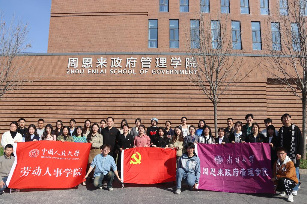 (通讯员:东韡妍 郝尚钰 摄影:赵乐扬)为深入学习贯彻党的二十大精神,全面贯彻习近平新时代中国特色社会主义思想,进一步深化高校党支部间的交流合作,激发基层党支部建设活力,3月30日至31日,中国人民大学劳动人事学院2023级硕士社会保障班党支部一行来到南开大学周恩来政府管理学院,与政治学本科生党支部开展主题为“传承革命精神,赓续红色血脉”的联学共建活动。