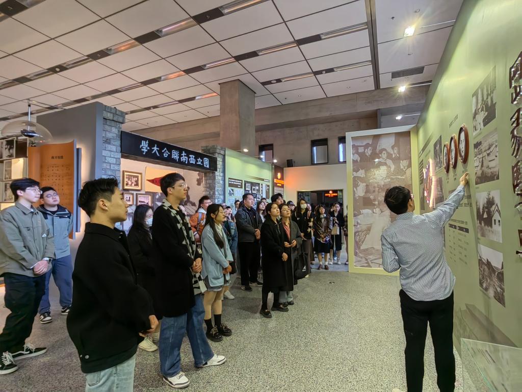 南开大学周恩来政府管理学院政治学本科生党支部与中国人民大学劳动人事学院2023级硕士社会保障班党支部共同参观南开大学海冰楼校史馆。在讲解员的介绍下,同学们沉浸式感受南开大学爱国主义光荣传统,从创办初期的“育才救国”,到“知中国、服务中国”的办学宗旨,南开始终与时代、社会相偕行。振聋发聩的“爱国三问”,波澜壮阔的百年奋斗征程,在场的党员共同感受这巍巍学府的爱国初心与报国情怀。