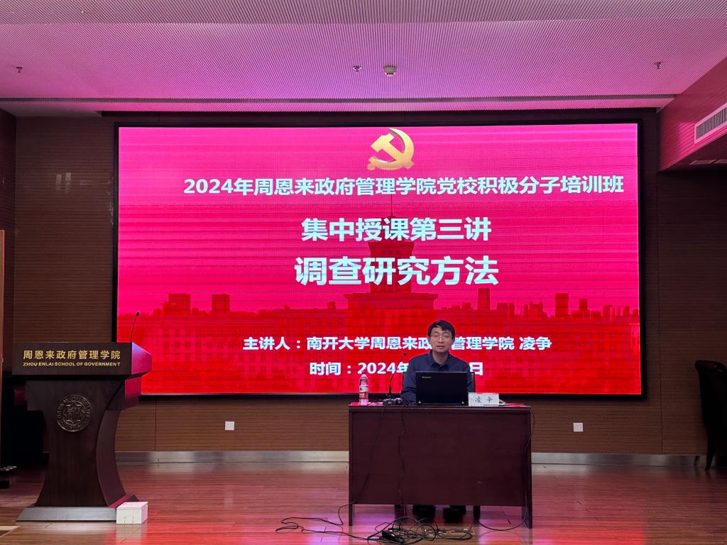 (通讯员:谭瀚)习近平总书记强调,要大兴调查研究之风,深入了解群众需求,切实解决广大百姓关心关切的利益问题,不断提高人民群众的获得感、幸福感、安全感。4月3日,周恩来政府管理学院党校2024年积极分子培训班邀请学院政治学系凌争讲授主题为“调查研究方法”的专题党课,学院70余名入党积极分子参加。