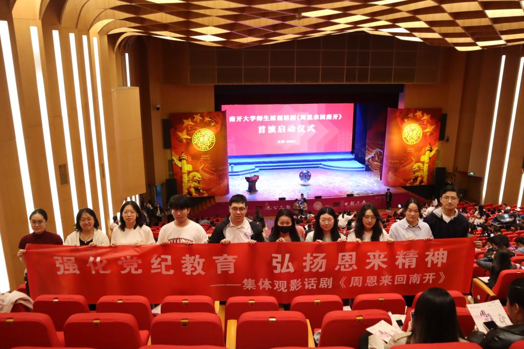 傍晚时分,师生党员来到学生活动中心共同观影话剧《周恩来回南开》。通过学校师生大型原创话剧的成功诠释,在场师生党员深刻感悟周恩来总理在南开认真求学、投身爱国运动、走上革命道路的人生经历,并在周恩来总理第三次视察南开的动人演绎中,为周总理深深的南开情动容落泪。结合当天的调研走访与现场授课内容,同学们纷纷表示本次党日活动充实而深刻,希望未来能再有机会向周秉德老师学习和聆听总理的生平故事,并将以此次“创最佳党日”和党纪学习教育为契机,进一步提高自身党性修养,坚定理想信念、增强纪律规矩意识,以青春报国之志不懈奋斗。