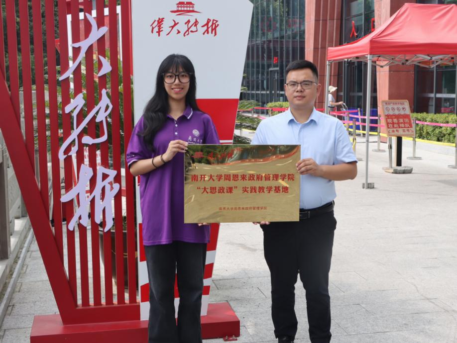 如何进一步挖掘红色精神内涵,创新红色故事宣传形式,这是当下思想政治教育的重大课题。为积极谋求合作,促进优势互补,南开大学周恩来政府管理学院与贵州伟大转折剧场达成了共建“大思政课”实践教学基地的校馆合作,授牌仪式于8月9日在伟大转折剧场举行。恩来精神展演团团长王国舟代表学院授牌,贵州伟大转折剧场综合办公室负责人吴彪代表接牌。仪式后,双方进行深入探讨交流,就基地未来开展活动的具体内容、形式及规划进行了展望。