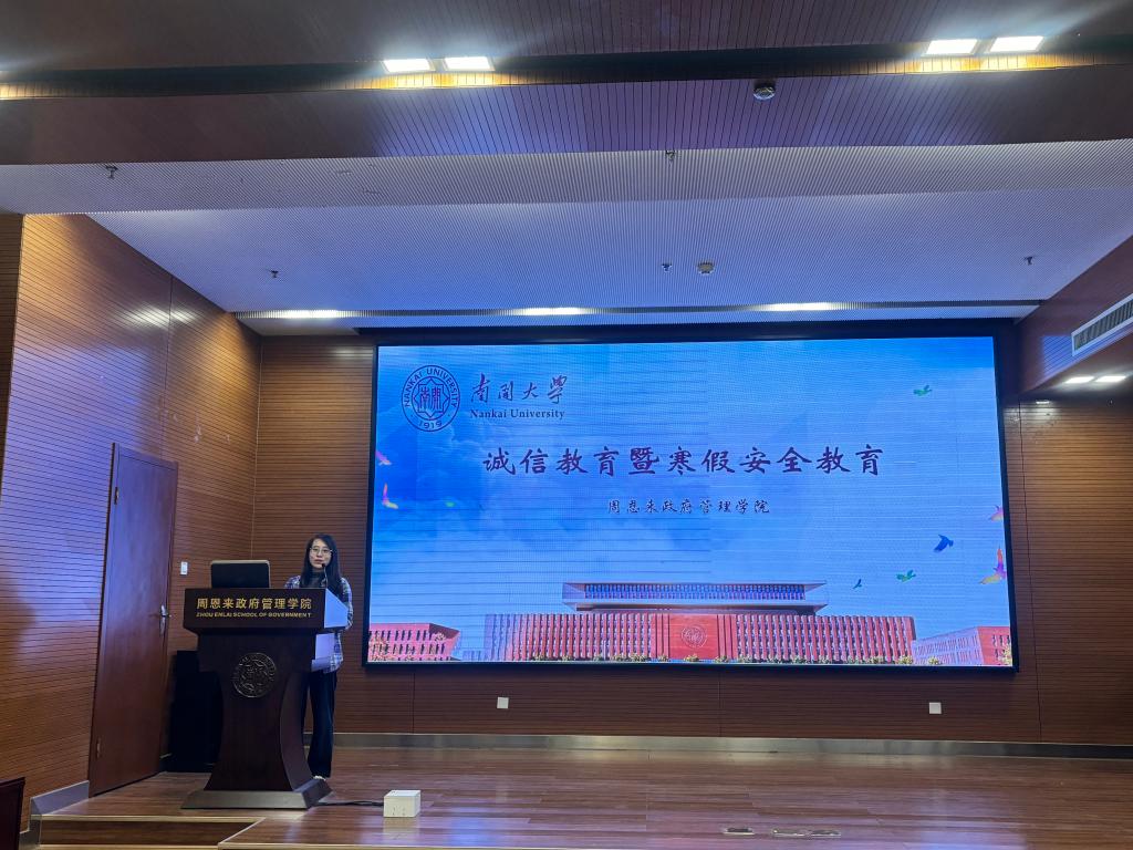 为进一步加强学生底线纪律意识,严肃考风考纪,推动学风建设,2024年12月19日下午,周恩来政府管理学院2024级本科生期末总结大会在院楼128报告厅召开,全体本科新生参加。