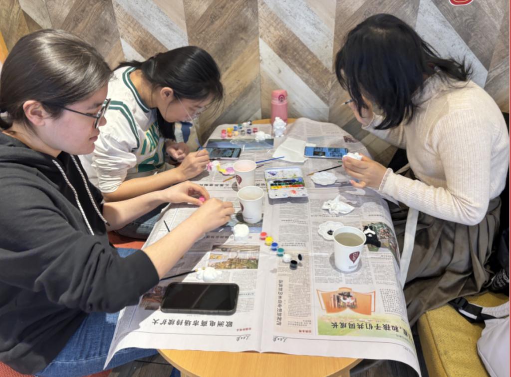 活动伊始,政府学院研究生课外活动中心副主席李沐熹首先向大家介绍了石膏娃娃的制作过程和彩绘技巧,鼓励大家舒缓心理压力,发挥想象力,大胆创作。在创作过程中,现场氛围愈发浓厚。同学们不时互相交流,分享着自己的创意灵感,或是为旁边遇到困难的伙伴出谋划策。欢声笑语与画笔在石膏上的摩挲声交织在一起,构成了一曲美妙的乐章。有的成员动作很快,他们似乎心中已经有了一个完整的画面,迅速地将大面积的底色涂抹上去,像是迫不及待地要赋予娃娃生命。从挑选到调色再到彩绘,同学们分享创意、交流想法,创作出了一个又一个充满想象力和创造力的作品,伴随着春日余晖,活动在一片欢声笑语中圆满落幕。