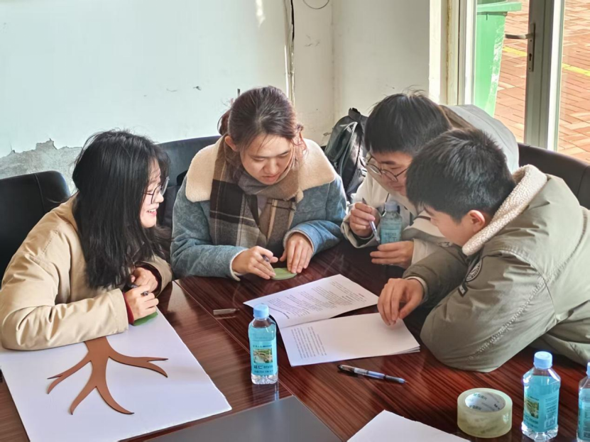 随后,师生一同开展“青春读书会”活动,阅读《中共中央 国务院关于进一步深化农村改革、扎实推进乡村全面振兴的意见》、北中塘村创新发展实践相关文章。阅读完成后,小组成员设计问题并写在树叶便签上,组内分为“调研员”与“专家”两类人员,与其他小组进行互动提问,获取“树叶”。这一环节中,同学们通过深度学习和研讨,对北中塘村的地理区位、村庄风貌及产业发展格局形成了全面深入的认识。