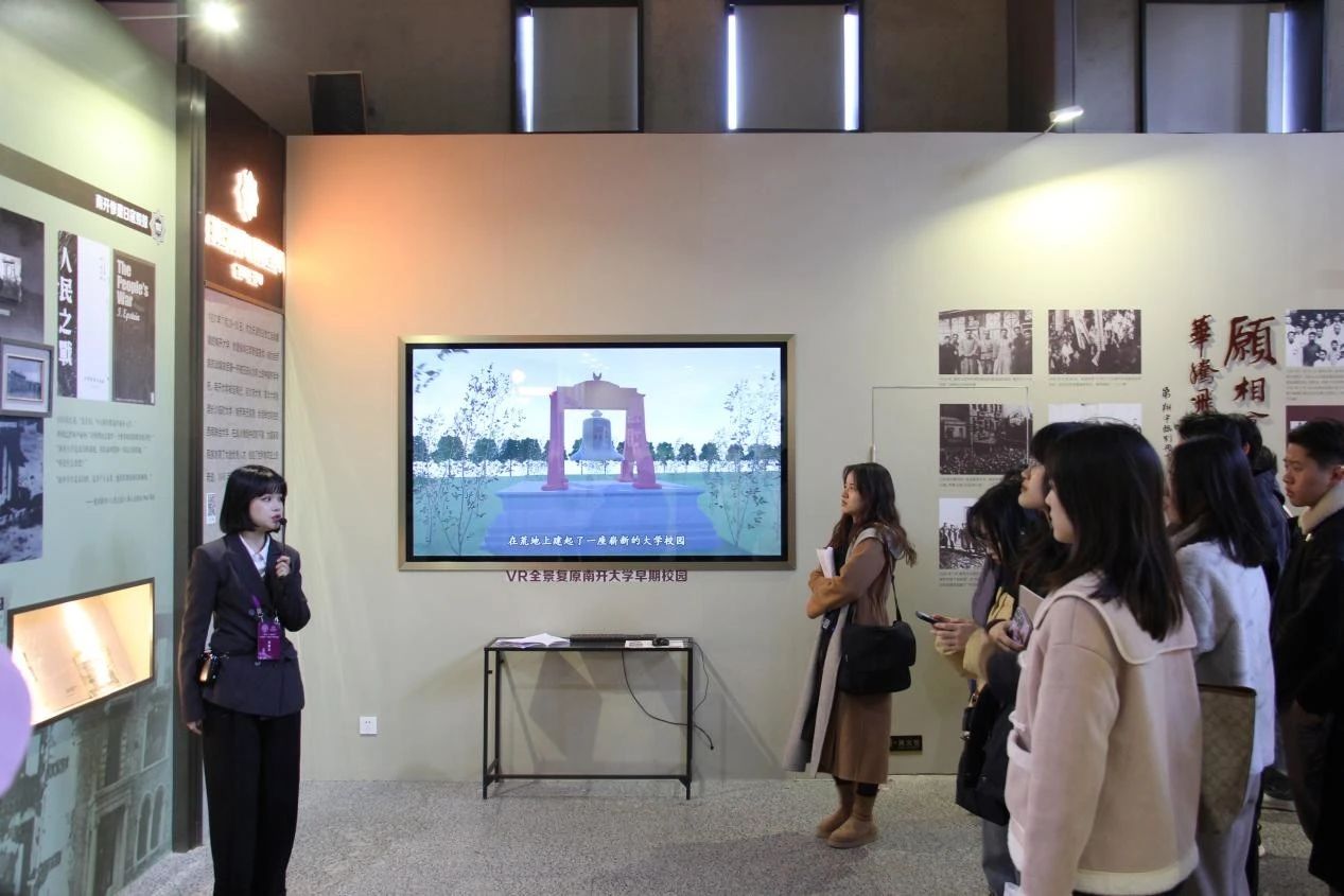 随后,两校党员共同前往南开大学海冰楼,参观“爱国奋斗·公能日新”南开大学百年校史主题展。该展览以百年南开一以贯之的爱国报国为主线,展现了南开的爱国初心、报国使命和为国担当。通过"育才救国、兴学图强""改革奋进、科教兴国"等七大历史板块,全体党员全景式感悟南开大学"知中国服务中国"的办学传统。展览中抗战时期西南联大师生徒步南迁的实物史料、新时代南开科研成果转化案例等,引发了在场党员对"爱国三问"的当代思考。