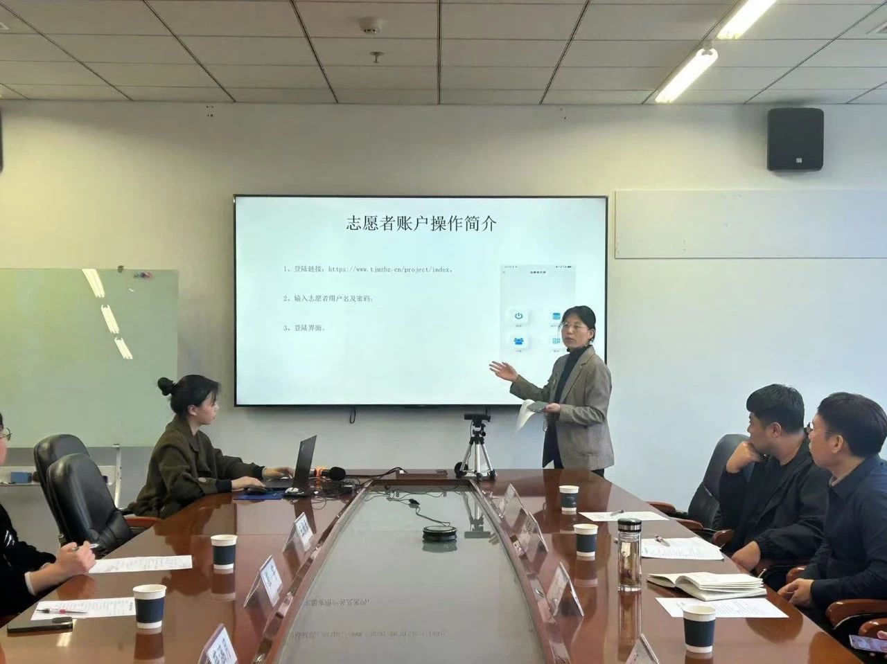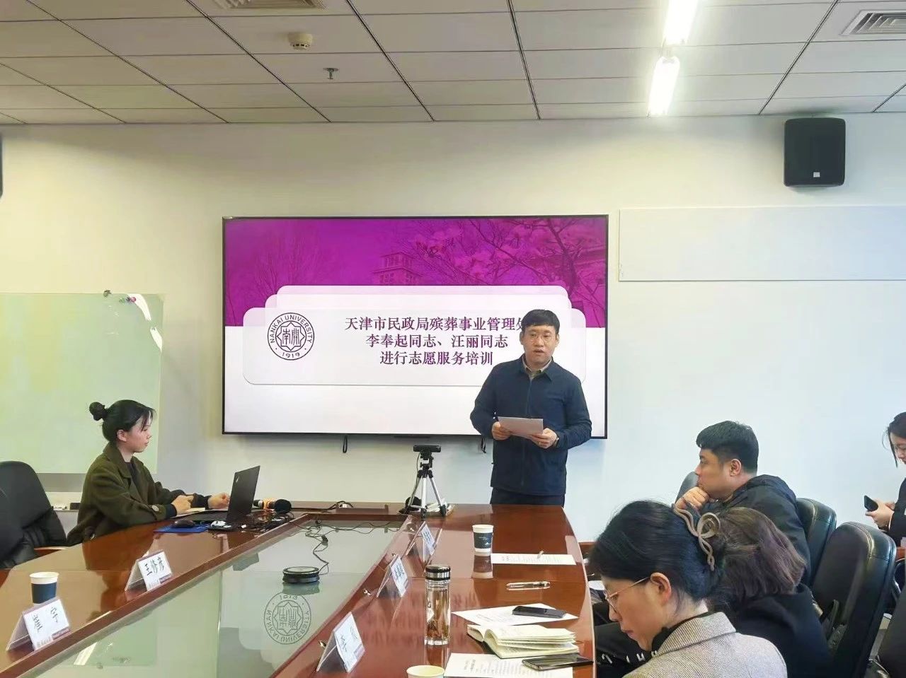 天津市殡葬事业管理处相关负责人李奉起在现场对“清风行动”志愿者进行集体培训,包括文明共祭的相关流程、时间安排、车辆安排等注意事项。李奉起同志表示,“‘清风行动’得到了周恩来政府管理学院师生的长期支持,希望我们的志愿活动一年更比一年好,真真切切地服务好广大人民群众。”随后,殡葬事业管理处信息科汪丽同志为大家详细介绍了“都市文明共祭”服务软件的使用方法、注意事项等内容。