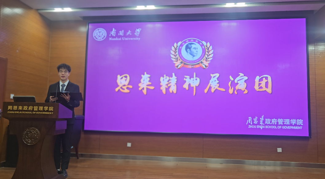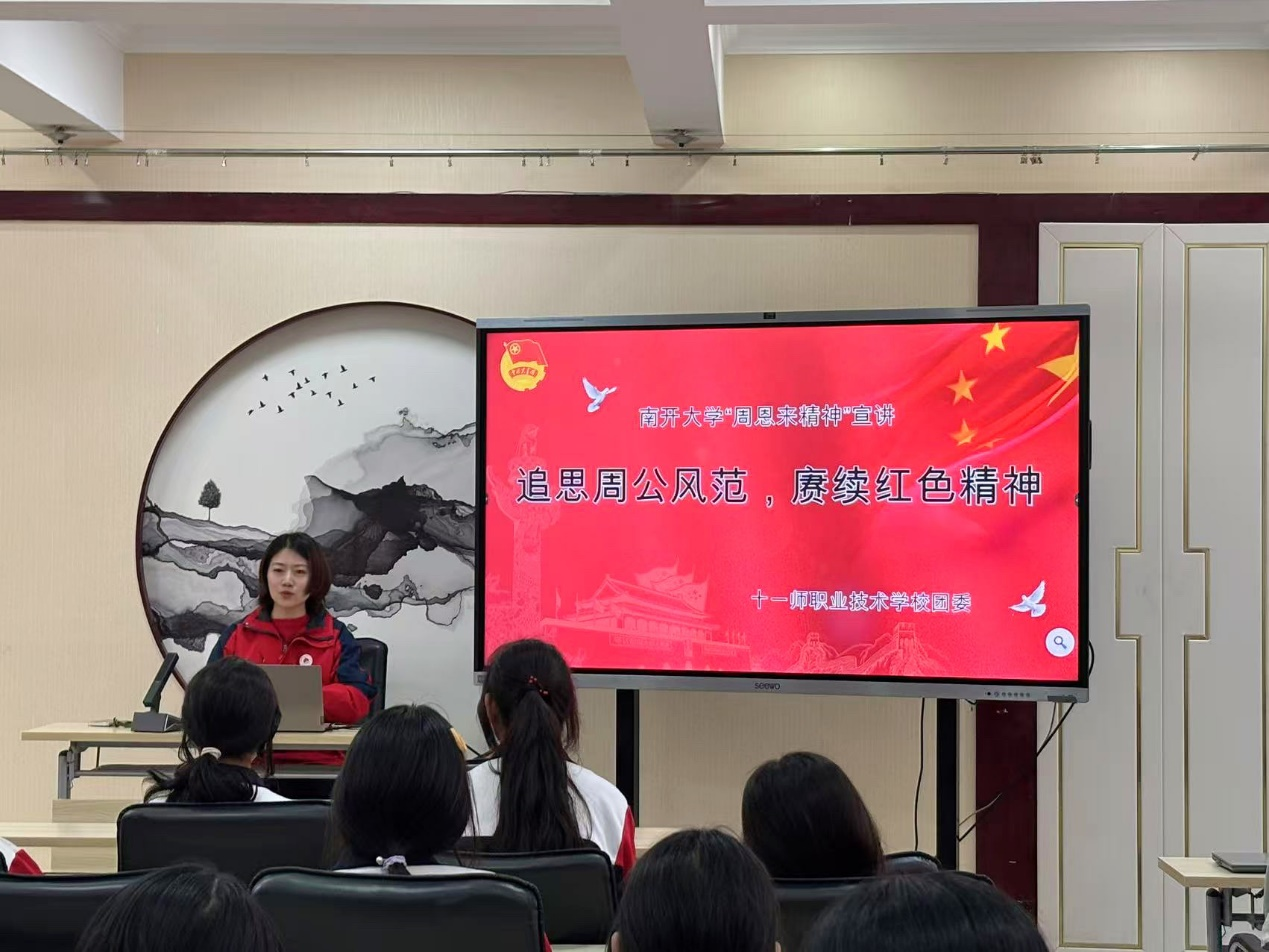 在清明节来临之际,为缅怀革命先辈,传承红色基因,4月2日下午,恩来精神展演团受邀为兵团第十一师职业技术学校进行展演。本次活动由天津市第二期马克思主义政治人才培养工程学员、“津石榴”西部支教团兵团第十一师工作组领队、南开大学周恩来政府管理学院团委副书记王燕主持。