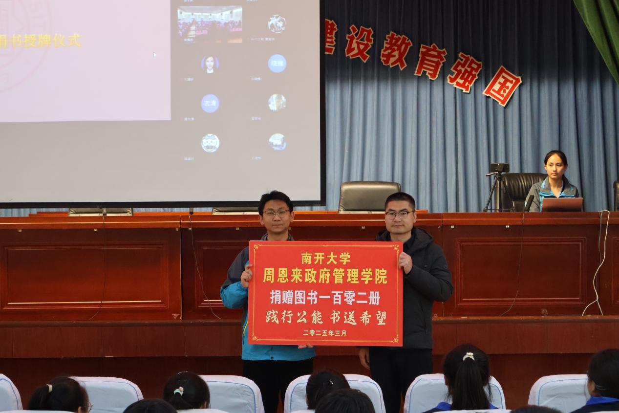 3月31日,周恩来政府管理学院与庄浪四中举行线上会议开展“情系庄浪”—捐书助学行动总结分享会。周恩来政府管理学院党委副书记兼副院长崔宇、庄浪四中副校长王长安出席活动并致辞。庄浪四中政教处主任靳军辉、文科班级师生代表周恩来政府管理学院专职团干部东韡妍、周恩来政府管理学院团委志愿服务与社会实践部、“政值青春”团小组共同参与本次活动。南开大学第26届研究生支教团成员、庄浪四中教师熊紫彤主持本次活动。