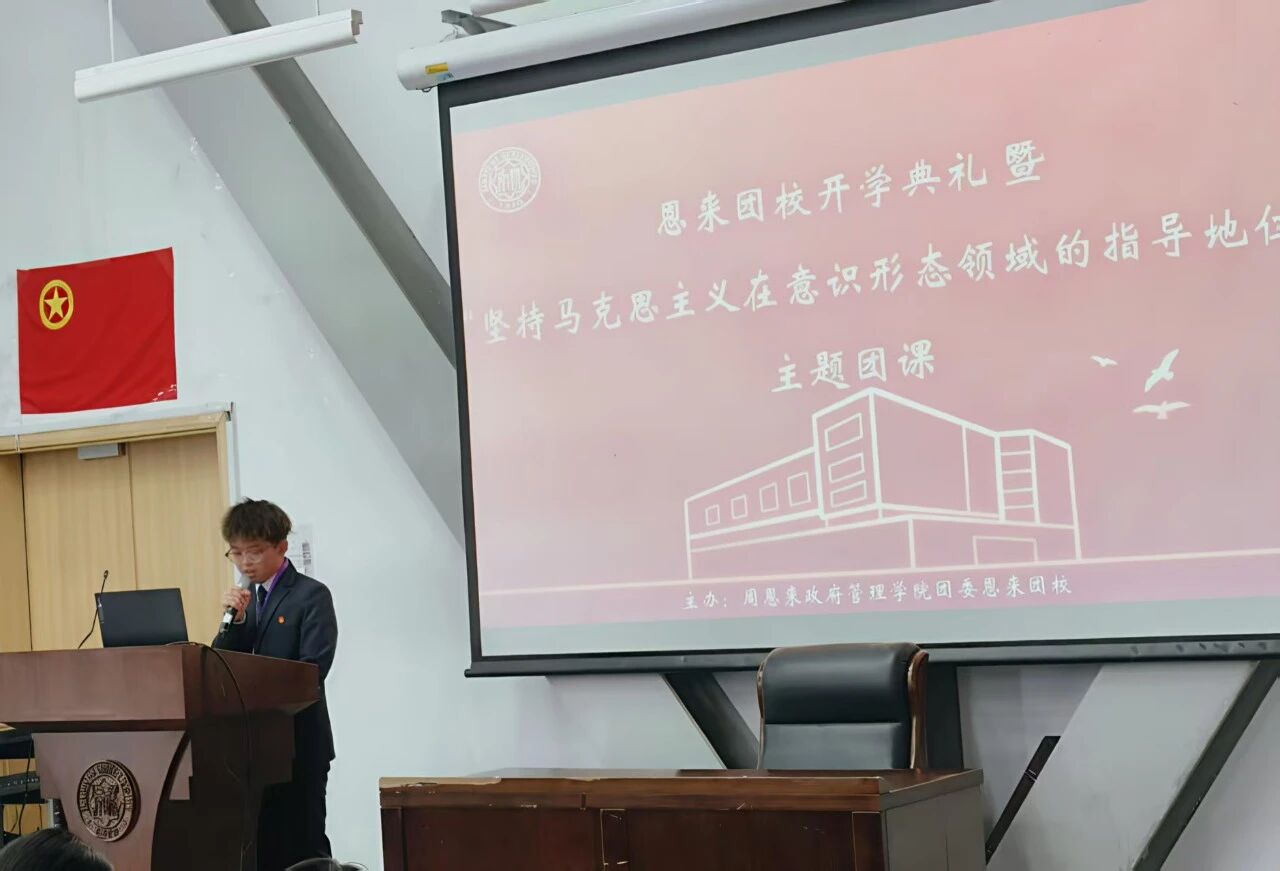 2025年10月23日14:00-16:00,周恩来政府管理学院团委恩来团校第二十二届团员教育培养班(秋季学期)开学典礼暨“坚持马克思主义在意识形态领域的指导地位”主题团课在大通学生活动中心F203顺利举行。