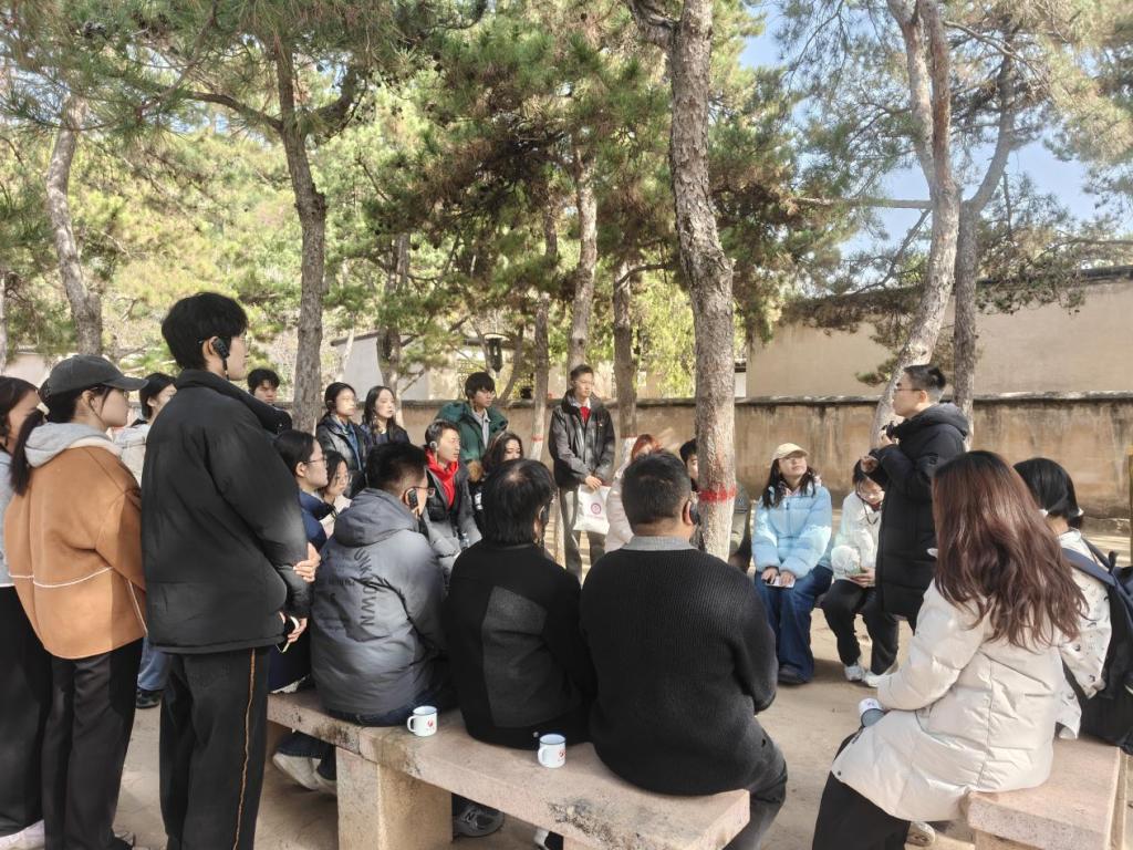 在中国共产党七届二中全会会址前,学院团委书记王修彦现场为全体学员讲授了一堂生动的沉浸式团课。他结合连日来的教育实践,深刻阐述了西柏坡精神与新时代青年成长的内在联系,勉励同学们要将西柏坡精神融入日常学习实践,抓实支部建设、扎实服务师生,在生动具体的工作实践中“敢于斗争、敢于胜利”,直面困难挑战、勇于争先突破,在国家发展中定位个人成长,在实现中华民族伟大复兴的征程中书写无愧于时代的青春华章。