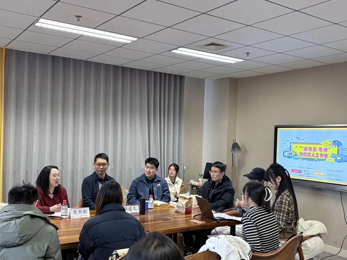 2025年12月18日,由南开大学周恩来政府管理学院研究生会主办的“导师—辅导员”协同育人工作坊在学院560会议室顺利开展。本次工作坊邀请到学院副院长、博士生导师郭道久教授与心理健康教育中心专职教师、学院辅导员李书航老师,围绕“研究生自我成长赋能与多元关系调适”主题,与同学们展开了一场真诚、开放的对话。