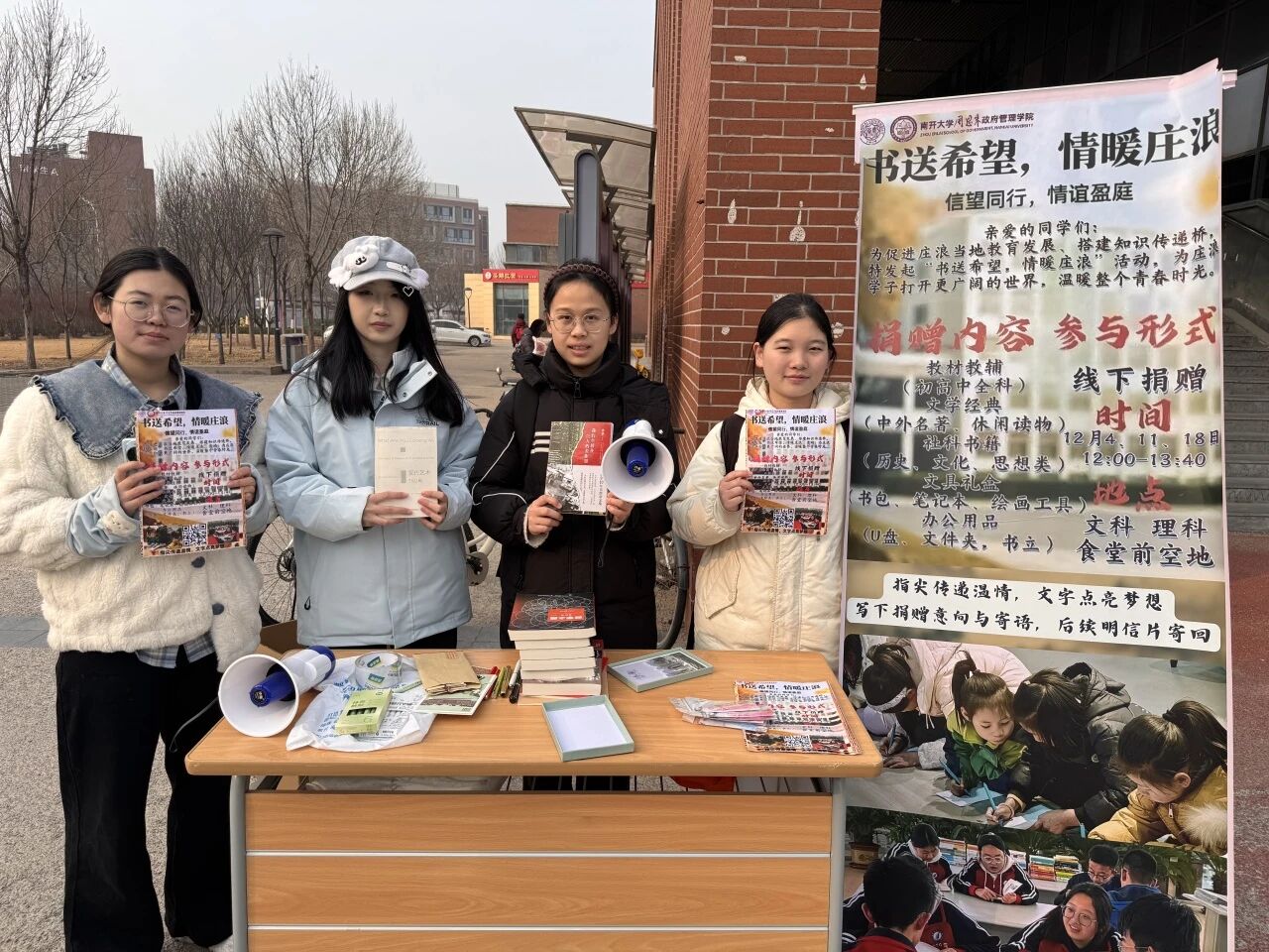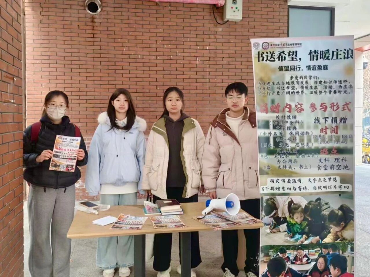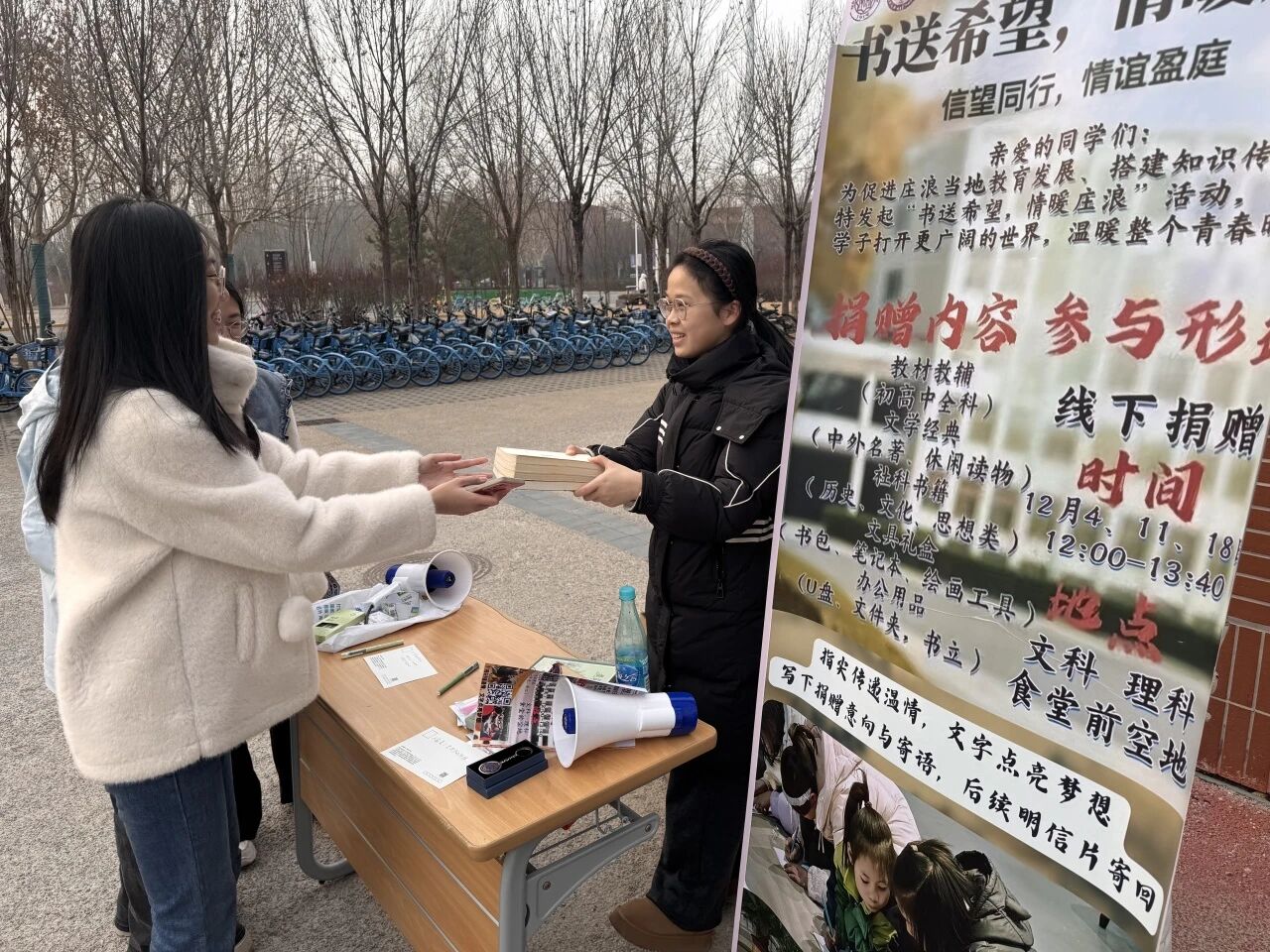 本次活动通过“线上+线下”结合的方式日日募集,广泛动员。依托政府学院公众号等平台发布倡议,并在津南校区设立固定捐赠点。历时数月,汇集起了师生们的爱心分享。许多捐赠者在明信片上写下寄语,随书一同寄往庄浪。四中的同学们在收获知识的同时,更从中感受到了来自南开学子的真挚陪伴。这份跨越山海的情谊,引发了温暖的回响。