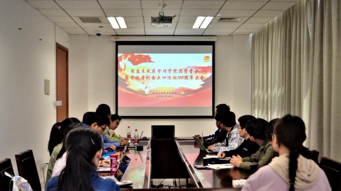 (新闻稿)为引导广大团员青年牢记五四历史,传承五四精神,4月30日上午,周恩来政府管理学院组织团学骨干集中观看纪念五四运动100周年大会。