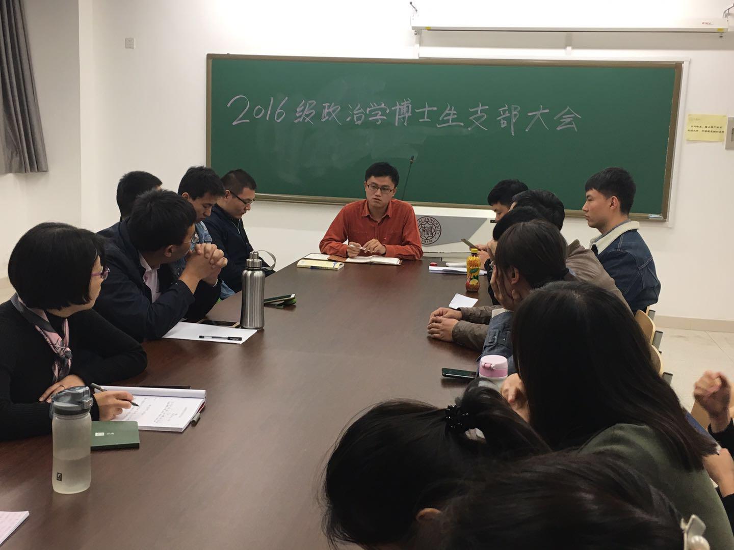 2017年10月24日晚,2016级政治学博士生党支部召开了本学期第二次支部大会,集体学习了习近平总书记所作党的十九大工作报告。每位党员都从自身学科背景出发,针对社会主要矛盾转变、国家治理体系现代化、中国全球塑造力以及高等教育内涵式发展等多个热点话题展开了激烈的讨论,与会人员均对十九大报告作出了高度评价。