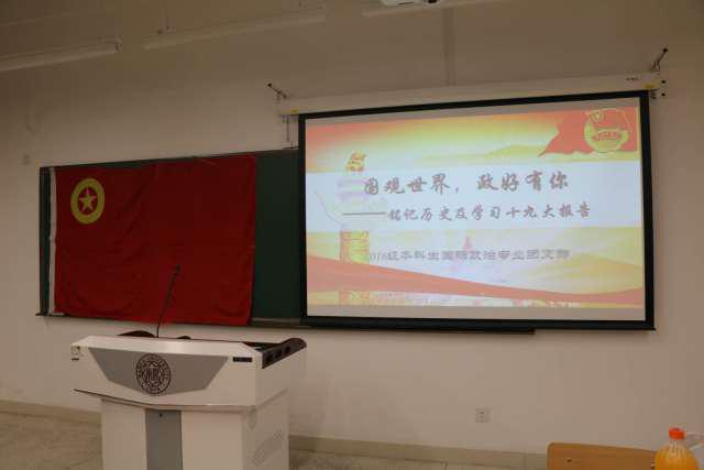 (通讯员:杨苗苗,李硕)11月19日晚19:00,16级本科生国际政治专业团支部在周恩来政府管理学院211教室成功举办了以“国观世界,正好有你——铭记历史及学习十九大报告”为主题的理论学习活动。27位团支部成员参加本次活动。