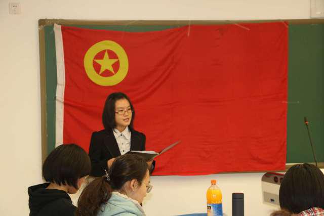 本次活动依托十九大胜利召开为背景,结合专业自身特色,以铭记历史与学习十九大报告为重点,进行学习、交流。活动由李硕、赵乾主持,在团支部成员高昂的团歌声中开始。